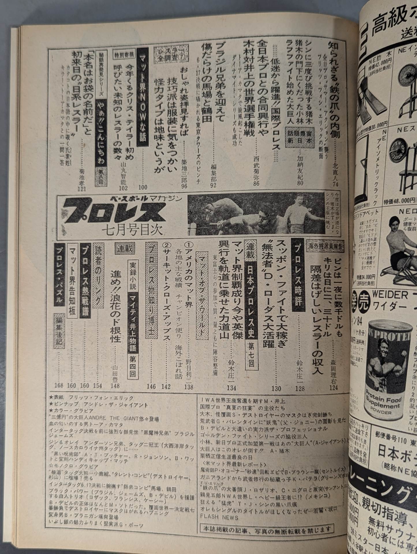知られざる”鉄の爪”F・V・エリックの世界 A・猪木は、T・J・シンに勝てるか? / 【付録】◯ピンナップ(アンドレ・ザ・ジャイアント) / 表紙:フリッツ・フォン・エリック