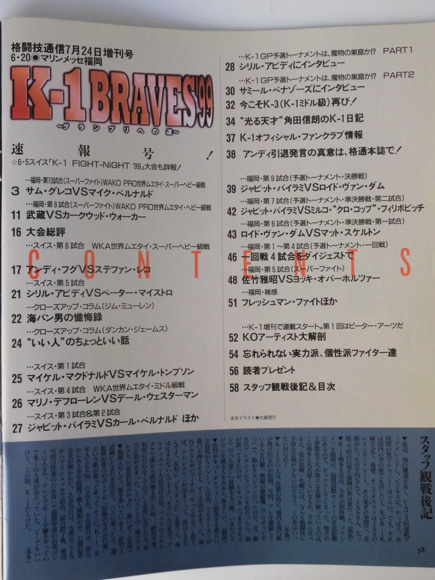 1999年 「6.20K-1BRAVES’99速報号」 Kの誇り! / 表紙:サム・グレコvsマイク・ベルナルド