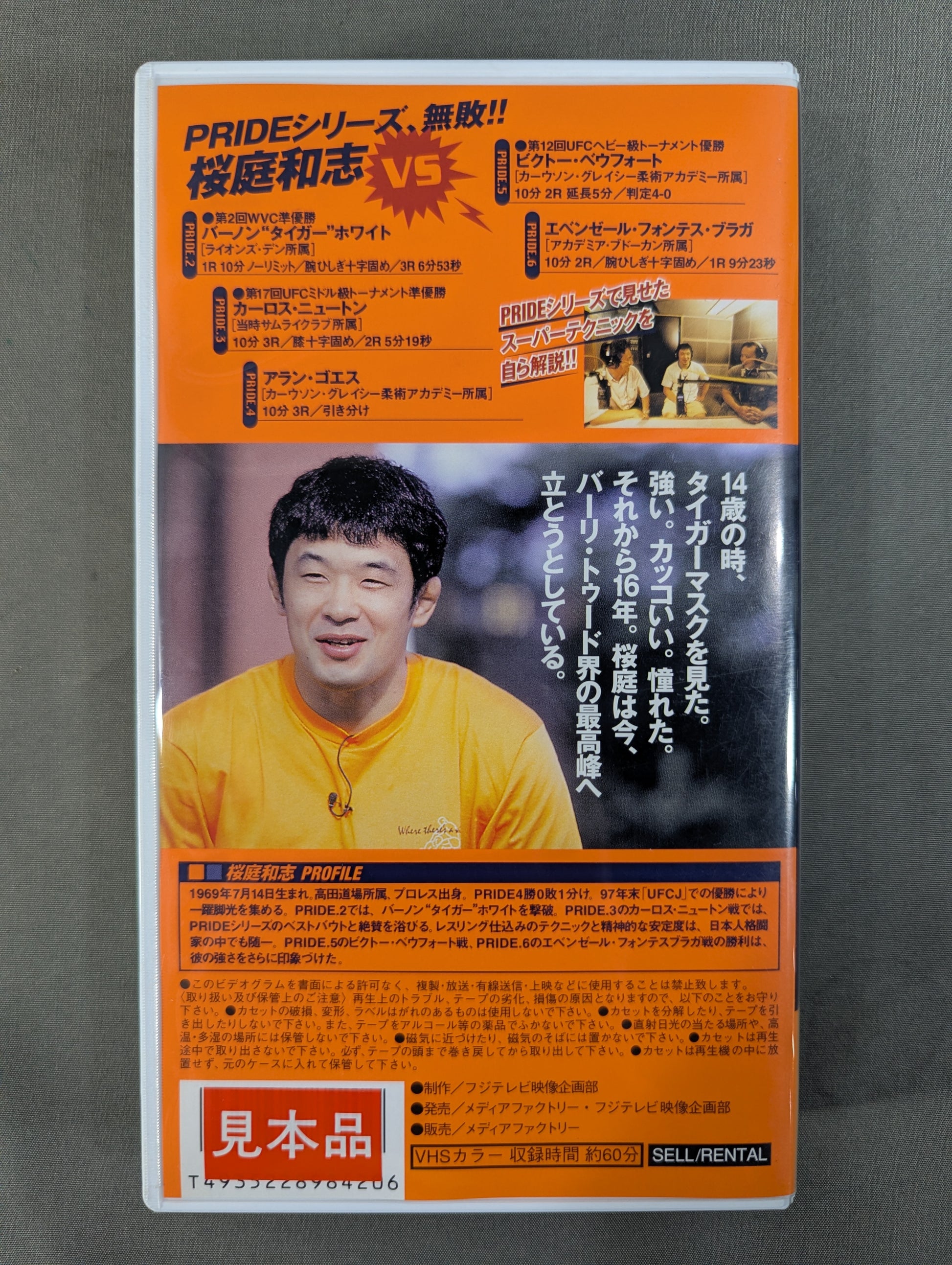 14歳の時、タイガーマスクを見た。強い。カッコイイ。憧れた。それから16年。桜庭は今、バーリ・トゥード界の最高峰へ立とうとしている。 PRIDE2、3、4、5、6の試合と共にテクニックを自ら解説!!