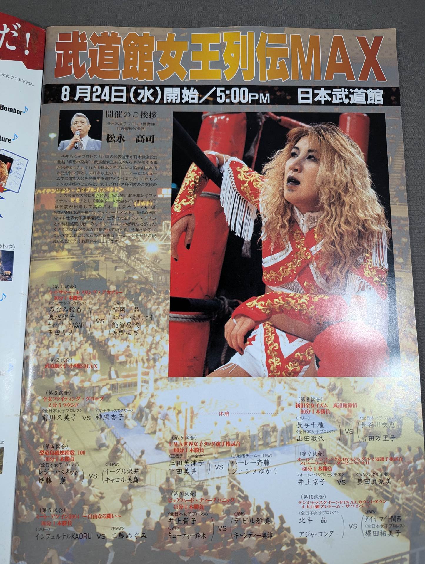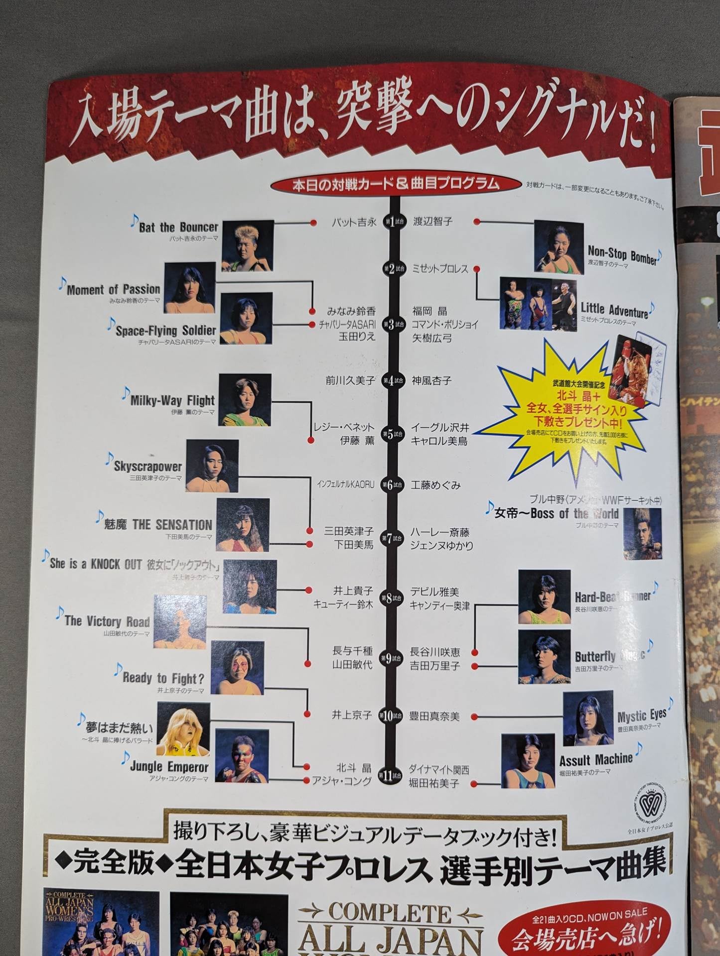 会場:日本武道館 / 印刷対戦カード:北斗晶&アジャ・コングvsダイナマイト関西&堀田祐美子 / 井上京子vs豊田真奈美