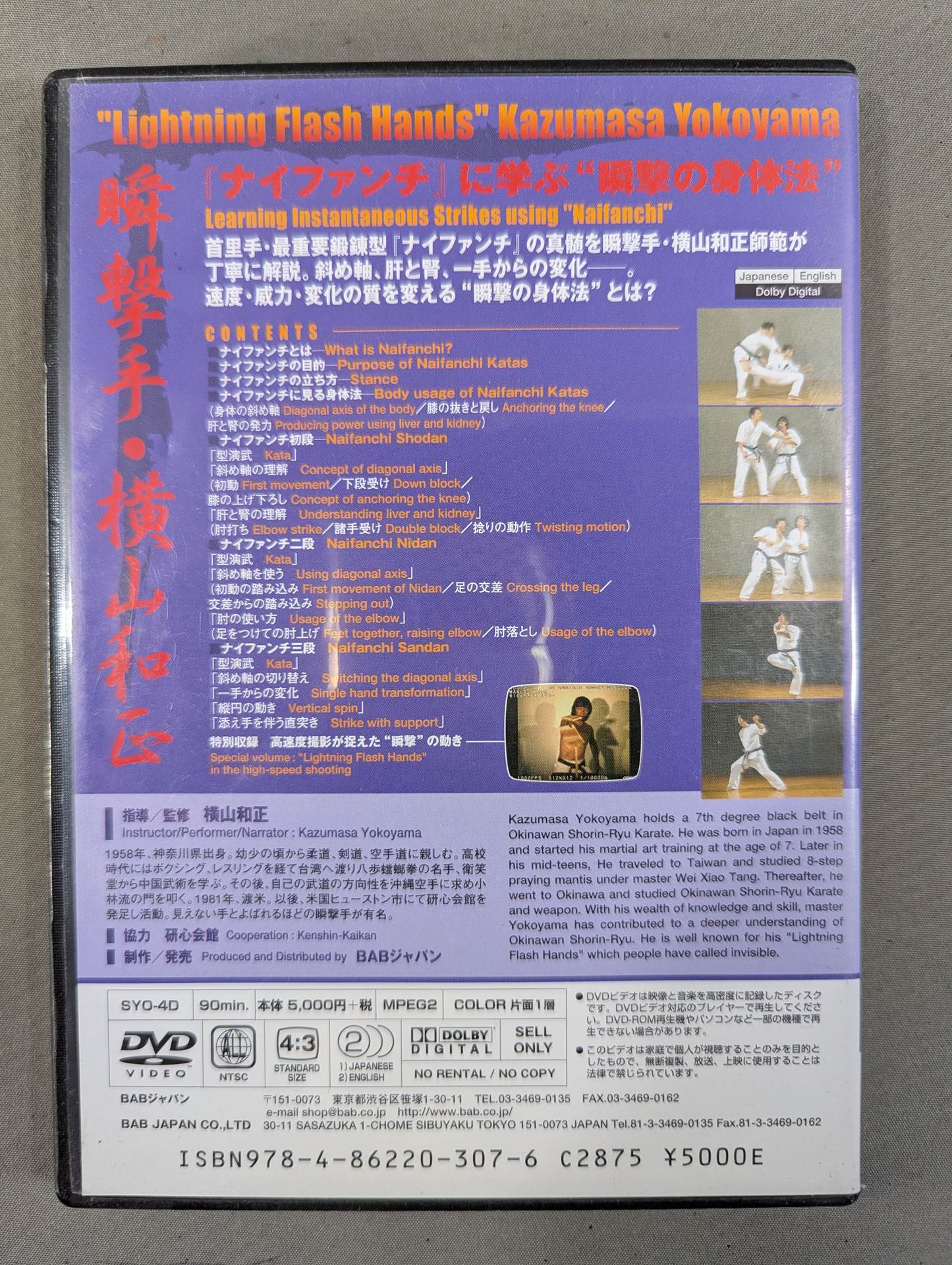 首里手・最重要鍛錬型「ナイファンチ」の真髄を瞬撃手・横山和正師範が丁寧に解説。肝と賢、一手からの変化、速度・威力・変化の質を変える"瞬撃の身体法"とは!? ○主な収録内容・ナイファンチとは?/ナイファンチ初段/ナイファンチ二段/ナイファンチ三段/高速度撮影がとらえた"瞬撃"の瞬間など