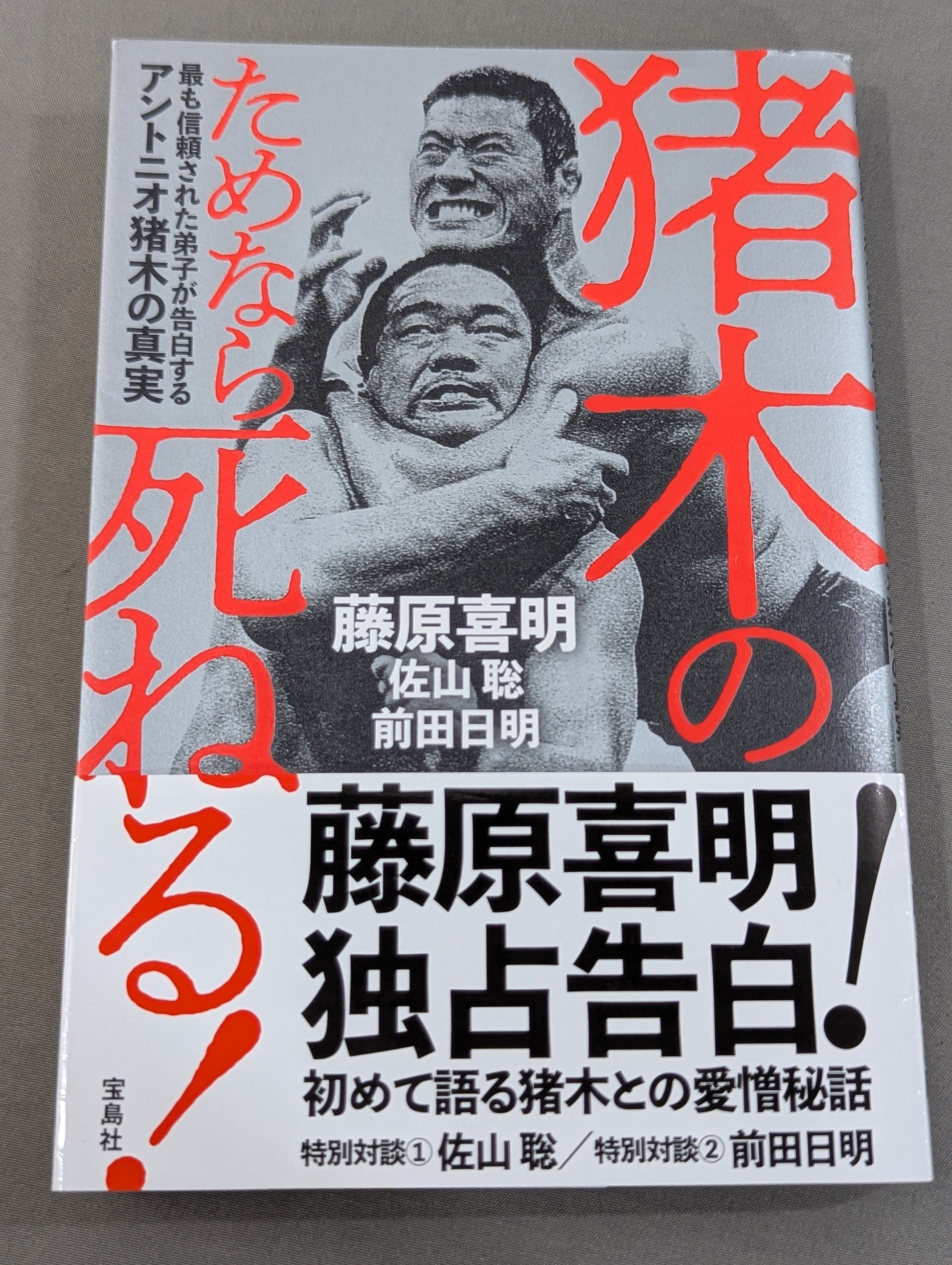 単(ソフトカバー) 宝島社 / プロレス界、最大のカリスマの死から1年――。アントニオ猪木とはなんだったのかという「猪木探し」が再燃している。本書は猪木の死以降、口を閉ざし続けてきた藤原喜明の独白本。新日プロ草創期、異種格闘技戦、UWFと新日への出戻り、引退、そして死に秘められた真実……猪木が最も信頼した弟子、藤原が語る猪木の秘話と愛憎のすべて。鳴り物入りで公開されたあの映画で、猪木を探すことができなかった、という人は必読の一冊。