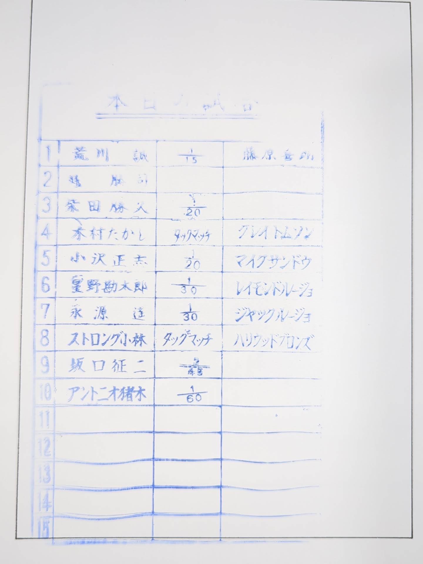 会場:蔵前国技館(最終戦) / スタンプあり:【NWFヘビー級選手権試合】アントニオ猪木vs空欄(ルー・テーズ)