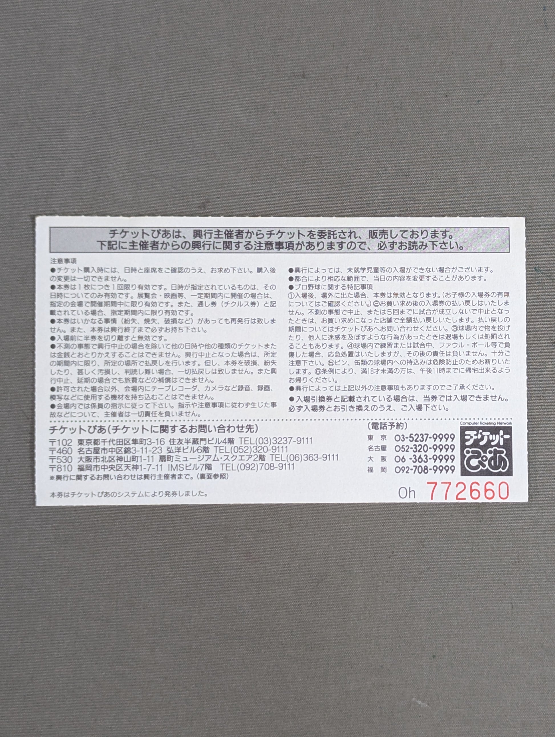 スタンドA 22ゲート 1塁側 9列24番 / アントニオ猪木vs天龍源一郎 / 【IWGPヘビー級選手権】橋本真也vs蝶野正洋
