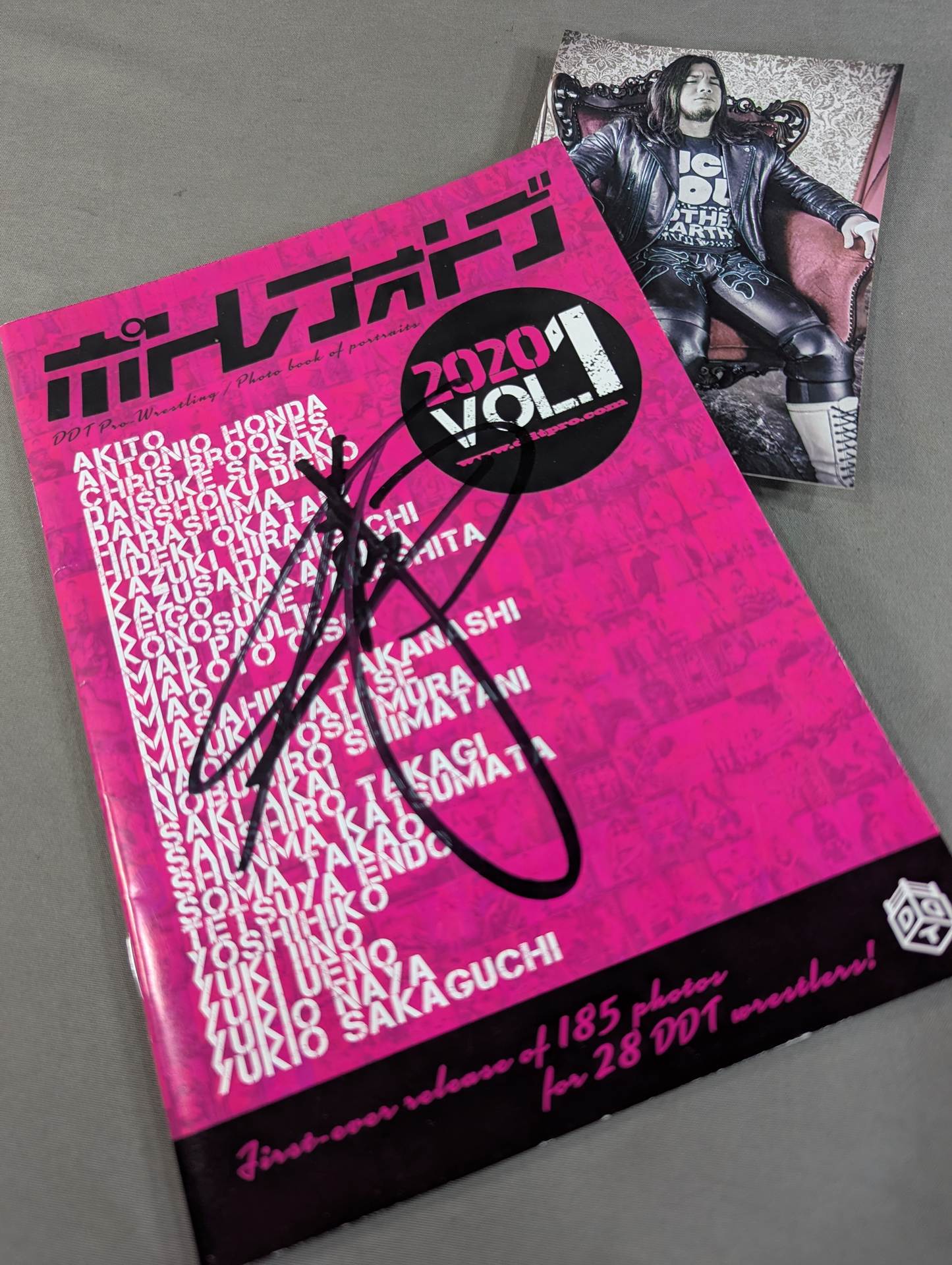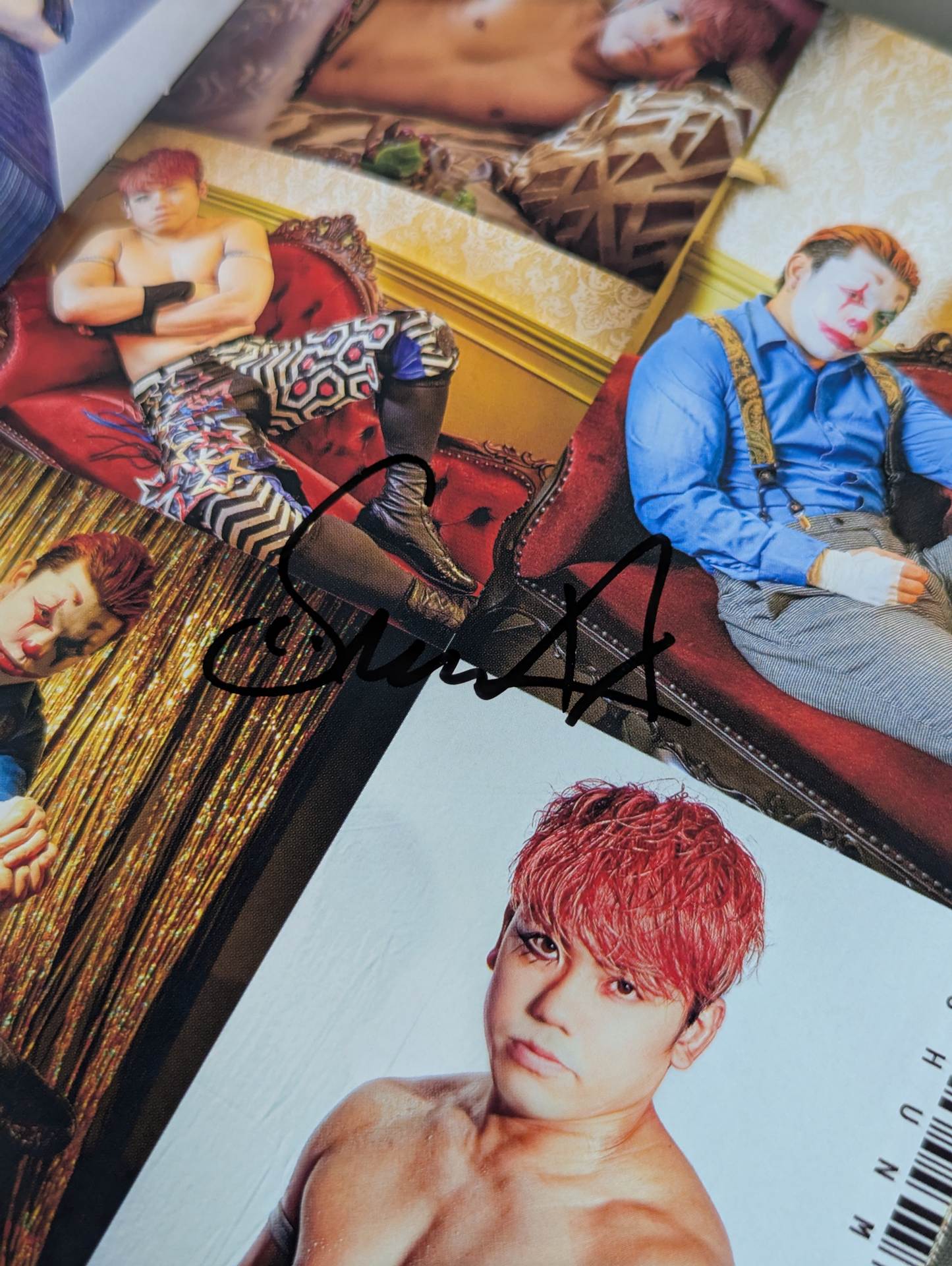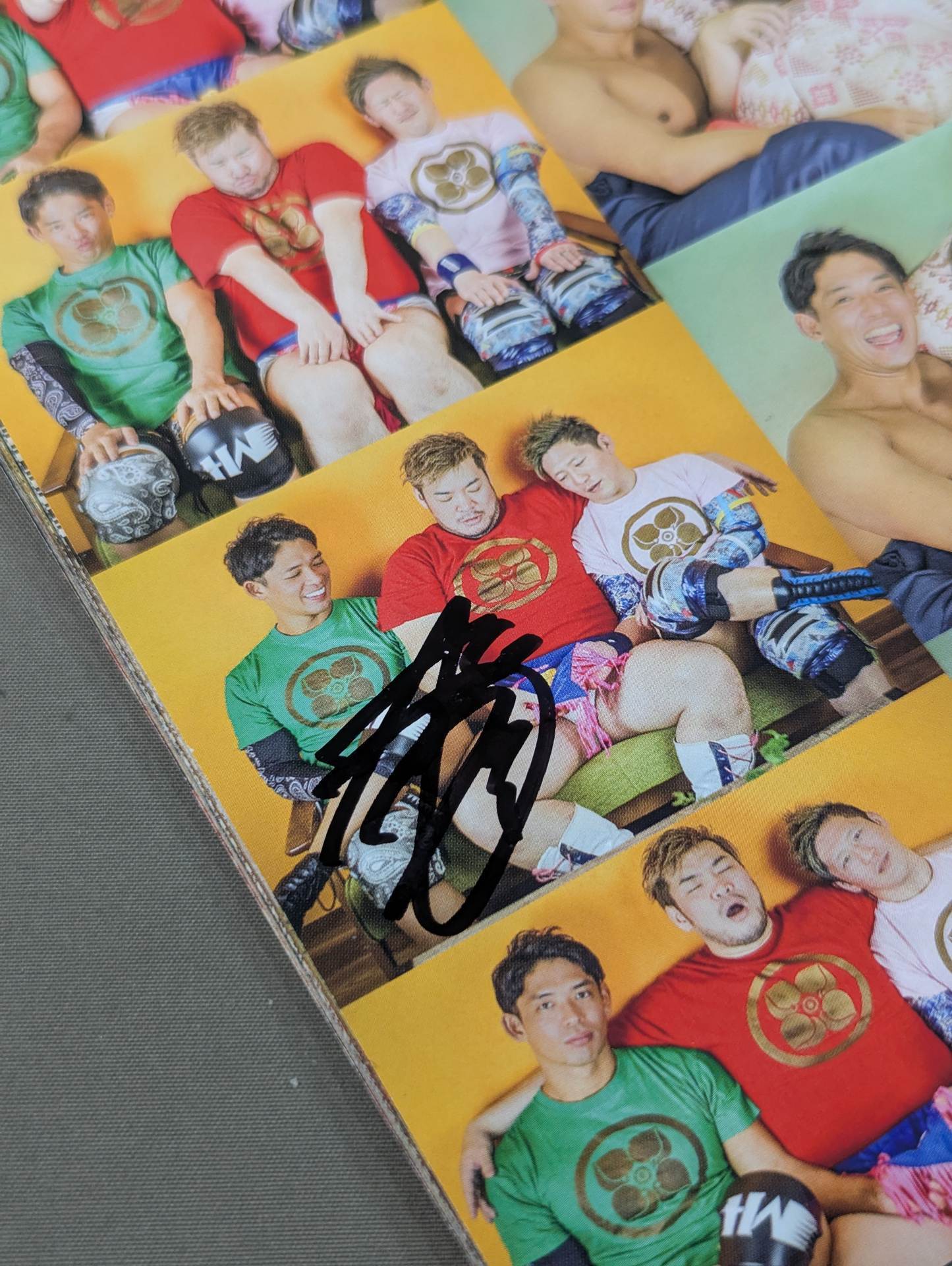 秋山準(表紙)、遠藤哲哉、竹下幸之介、佐々木大輔、HARASHIMA、上野勇希、高尾蒼馬、平田一喜、赤井沙希、勝俣瞬馬、MAO、吉村直巳、坂口征夫、樋口和貞、男色ディーノ、マッド・ポーリー、渡瀬瑞基、岡谷英樹、高木三四郎、アントーニオ本多、飯野雄貴、中村圭吾、納谷幸男、大石真翔、彰人 以上25選手の直筆サイン入り!