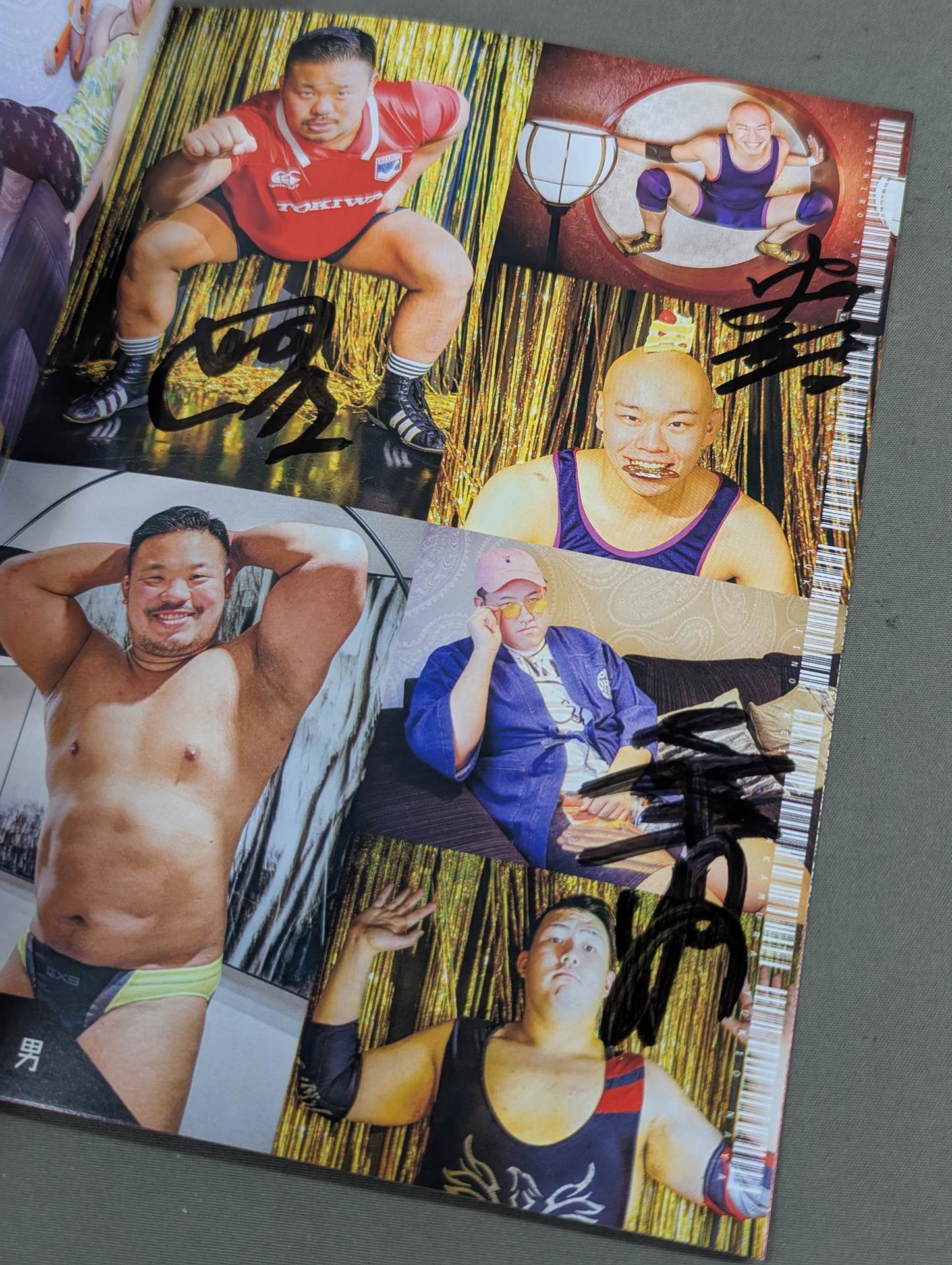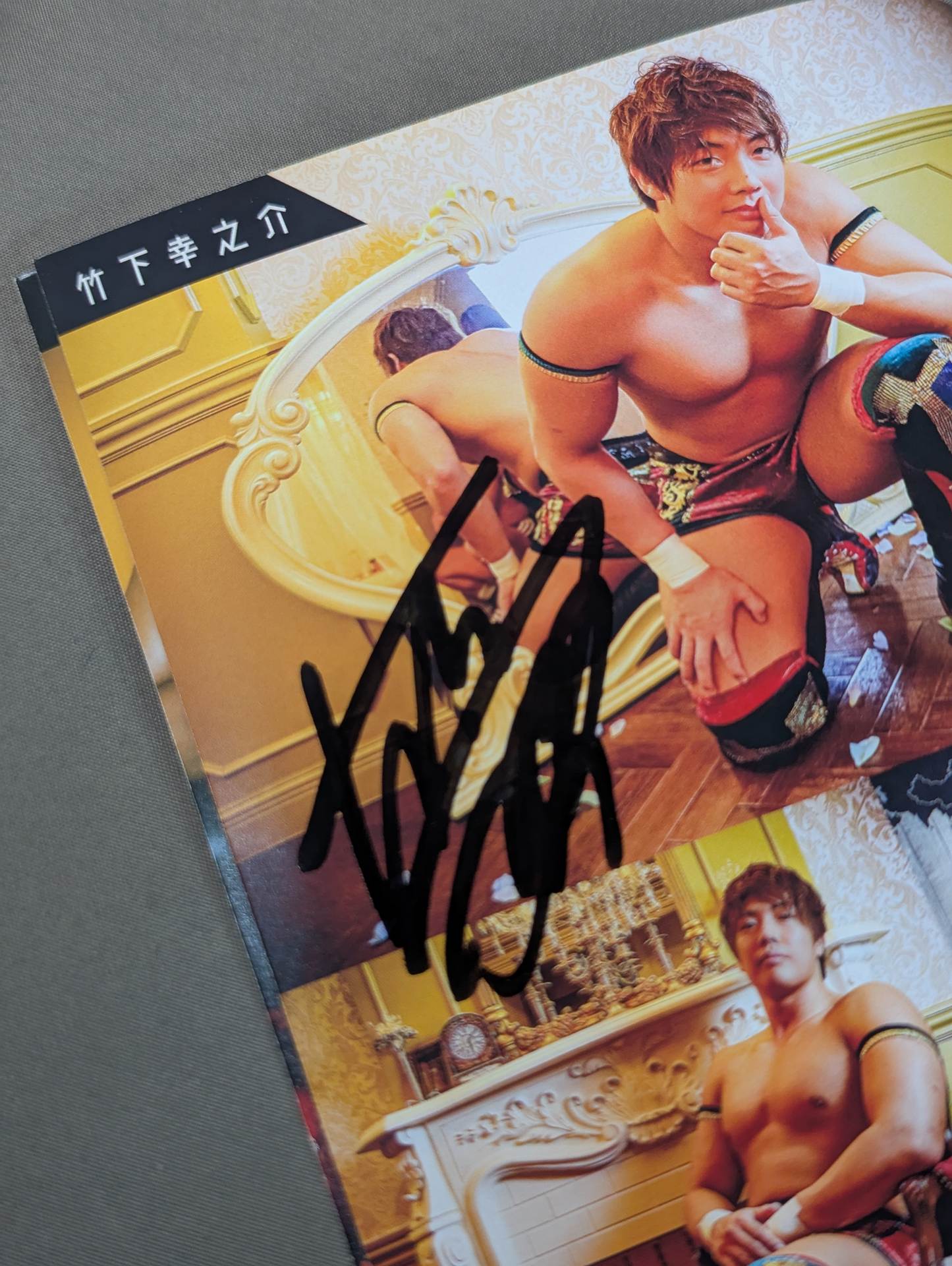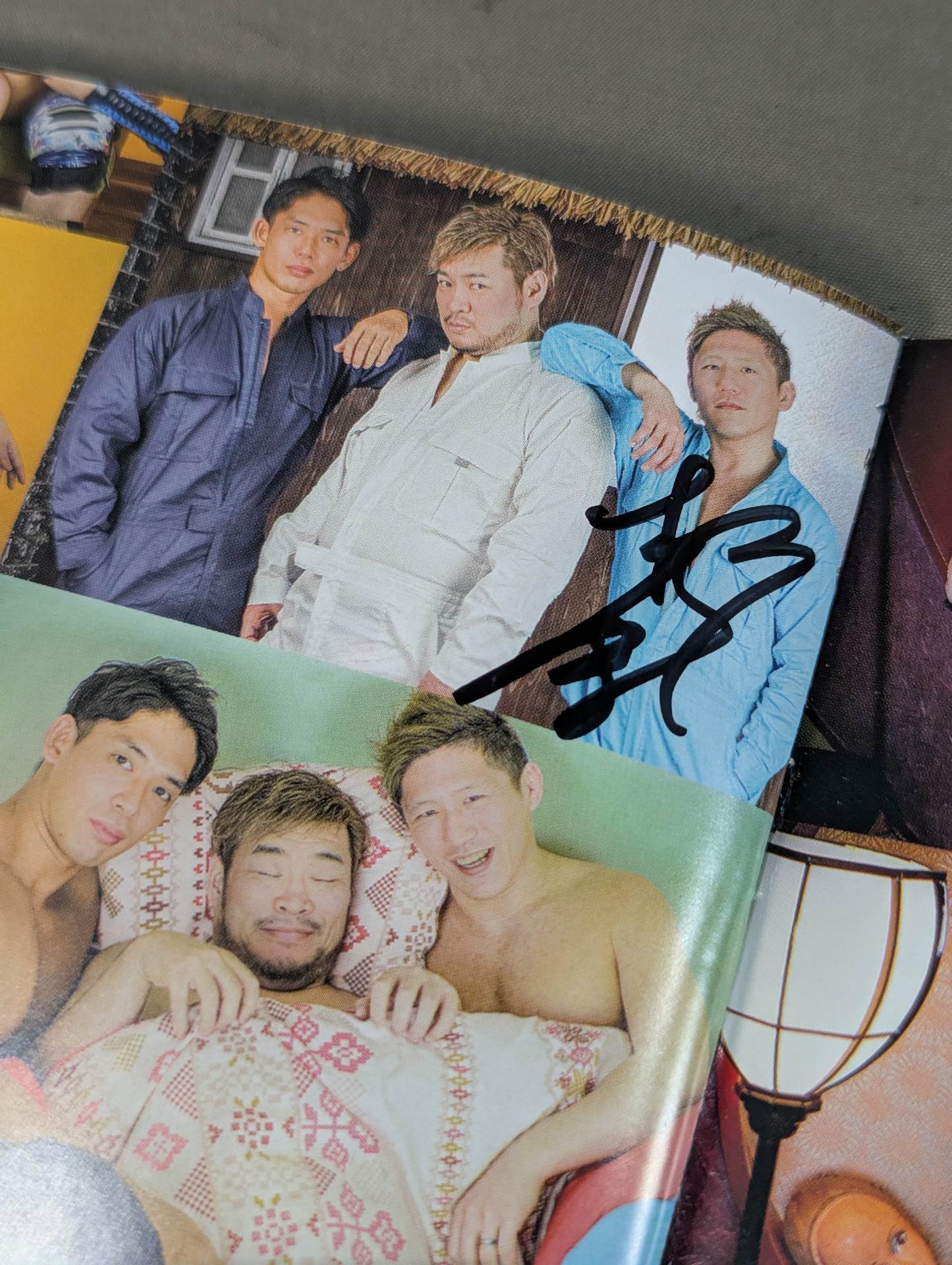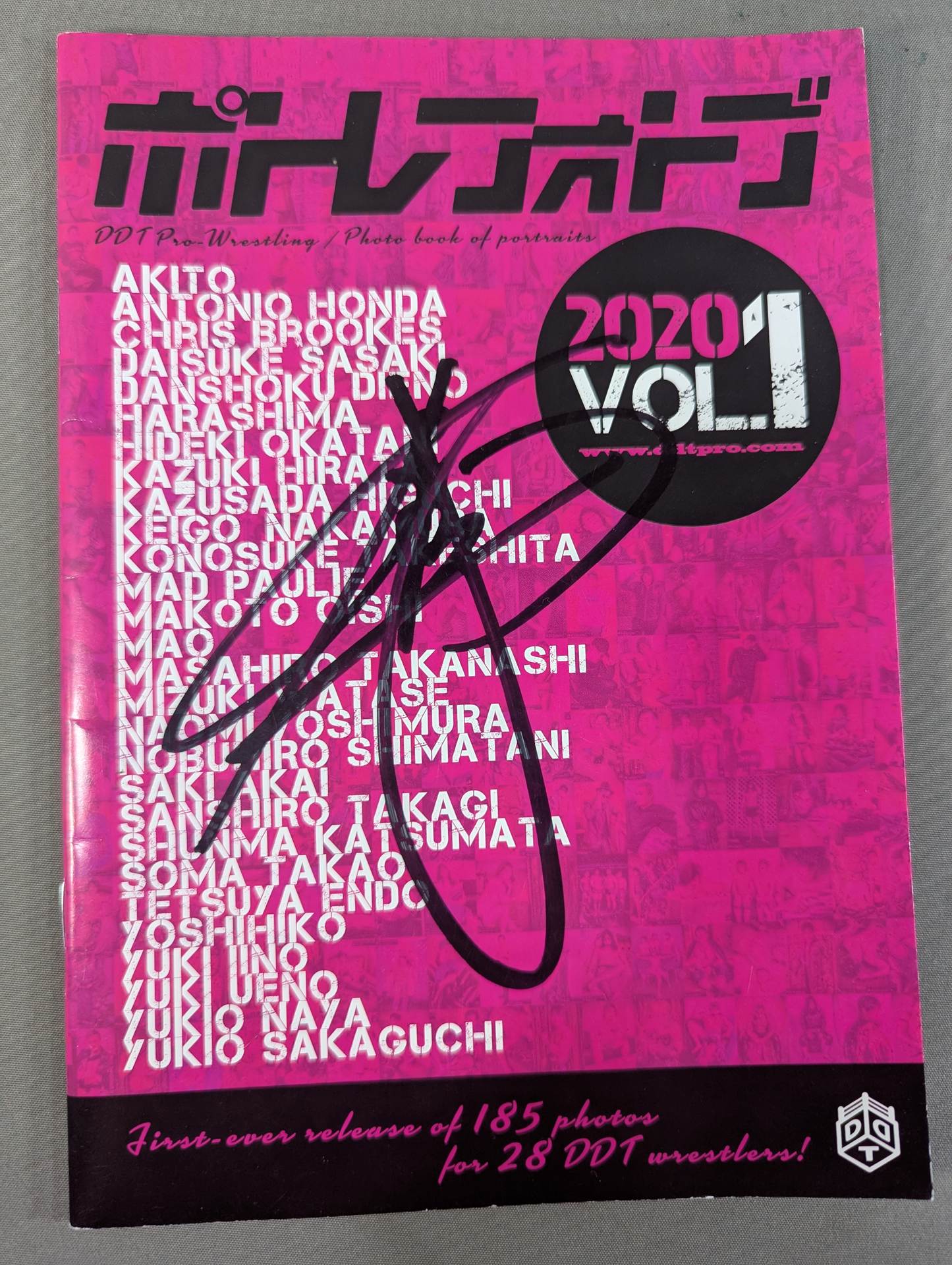 秋山準(表紙)、遠藤哲哉、竹下幸之介、佐々木大輔、HARASHIMA、上野勇希、高尾蒼馬、平田一喜、赤井沙希、勝俣瞬馬、MAO、吉村直巳、坂口征夫、樋口和貞、男色ディーノ、マッド・ポーリー、渡瀬瑞基、岡谷英樹、高木三四郎、アントーニオ本多、飯野雄貴、中村圭吾、納谷幸男、大石真翔、彰人 以上25選手の直筆サイン入り!