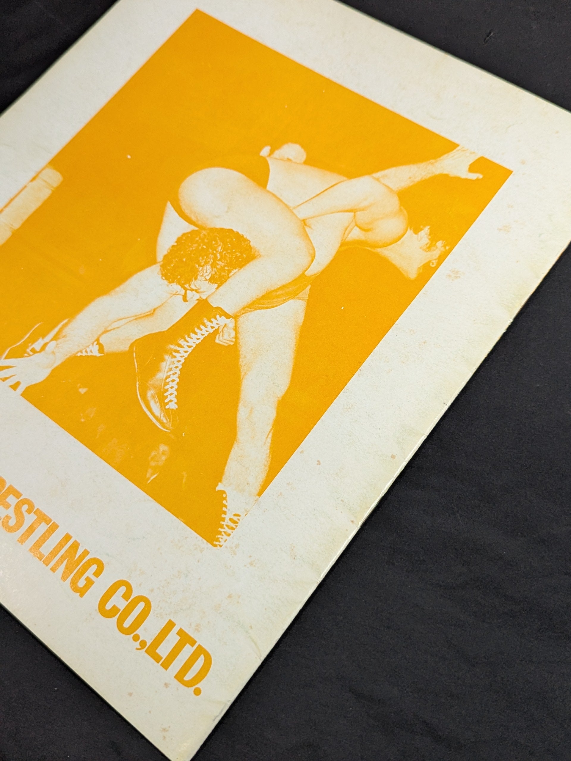 1972年 NWA、AWA、NWF、WWWF、いずれにも該当しないカール・ゴッチの所有する『真の世界ヘビー級王座』。このベルトを賭けて、「若獅子」から脱却しつつある一国一城の主アントニオ猪木と、神様 カール・ゴッチが、レフェリーをルー・テーズに迎え、旗揚げ戦以来6ヶ月ぶりのシングルで激突! テレ朝の中継がまだ始まっていないにもかかわらず、大衆の熱い視線が注がれ東京12チャンネルでテレビ中継もされた、伝説の一戦!会場:蔵前国技館 / スタンプあり:【真の世界ヘビー級王座選手権試合】アントニオ猪木vsカール・ゴッチ / 豊登&山本小鉄vsレッド・ピンパネール&ジン・リーガン / 柴田勝久vsパット・ローチ