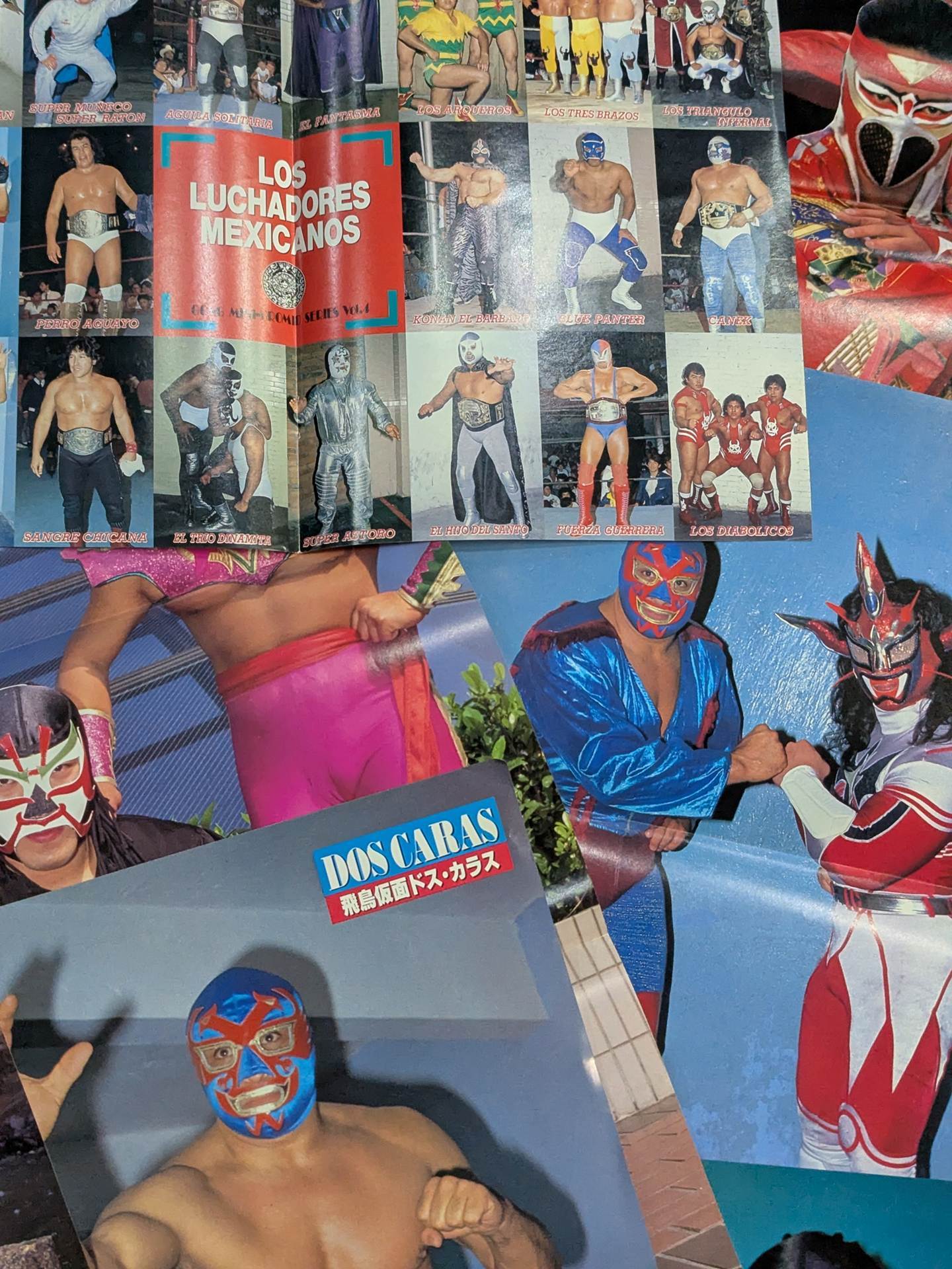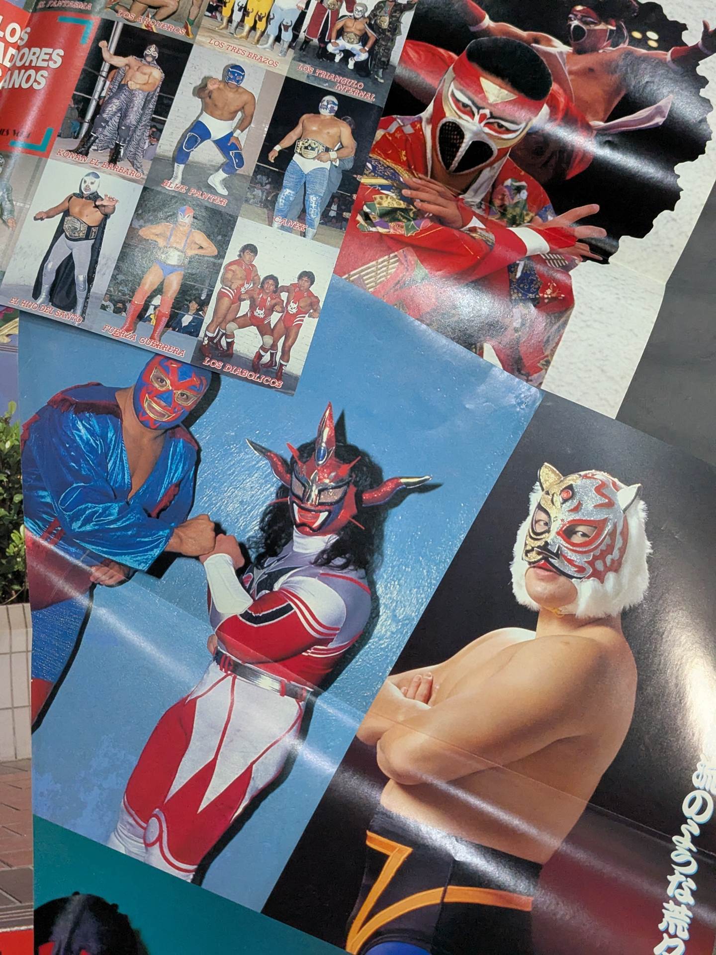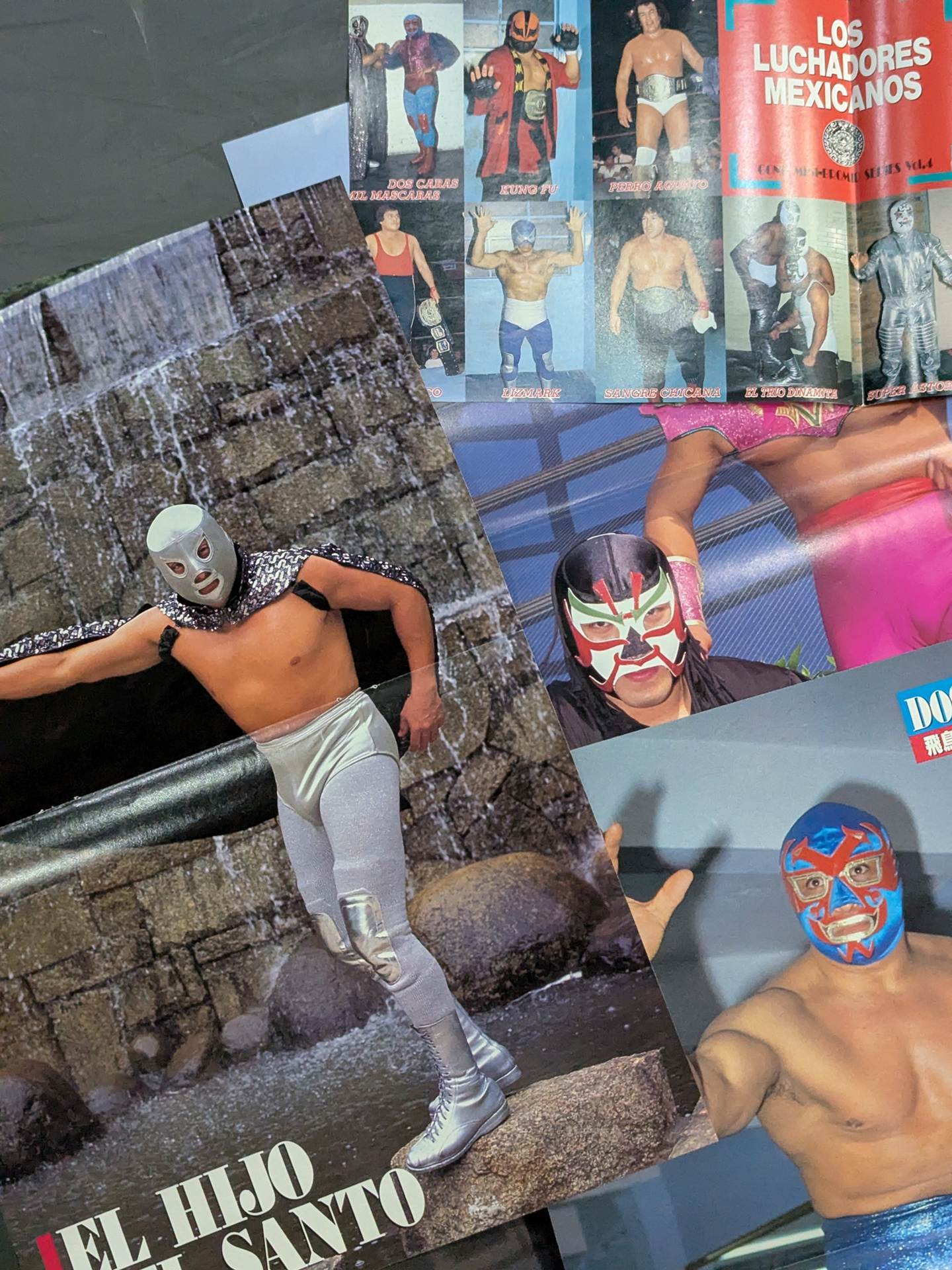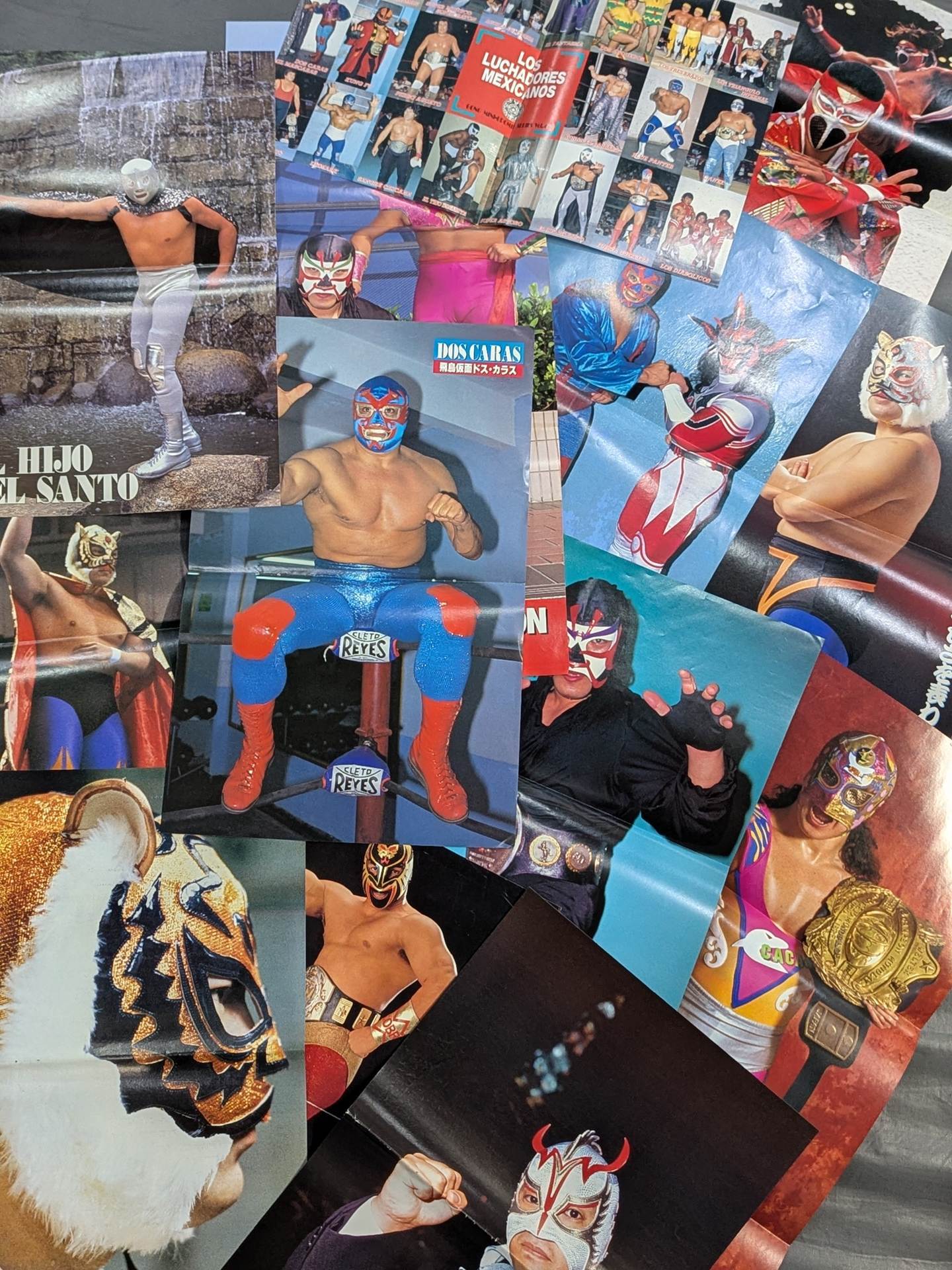 タイガーマスク、ザ・グレート・サスケ、スペル・デルフィン、ザ・コブラ、ウルティモ・ドラゴン、ハヤブサ、ドス・カラス、エル・サントなど、国内外問わず人気マスクマンの雑誌付録ピンナップセットです。