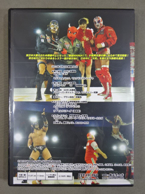 東日本大震災のため開催中止となった「覆面MANIA17」が復興支援の願いを込めて復活開催! 全5試合収録