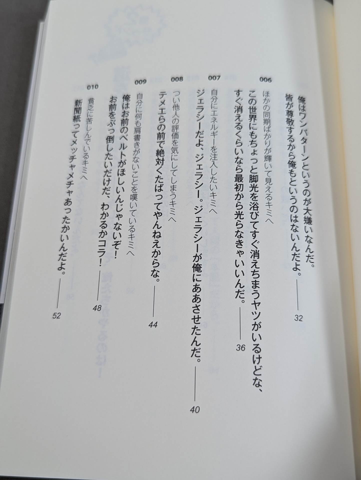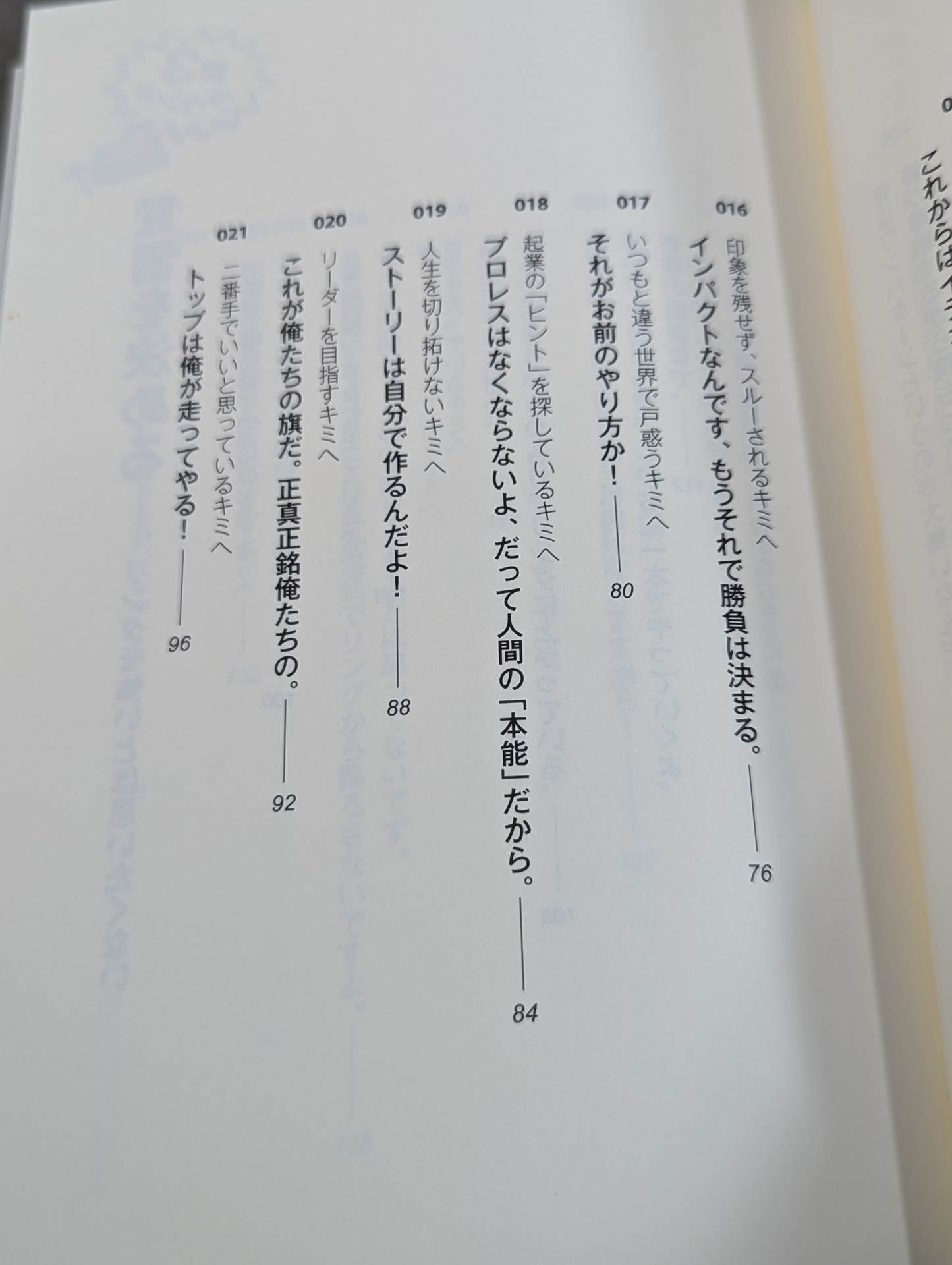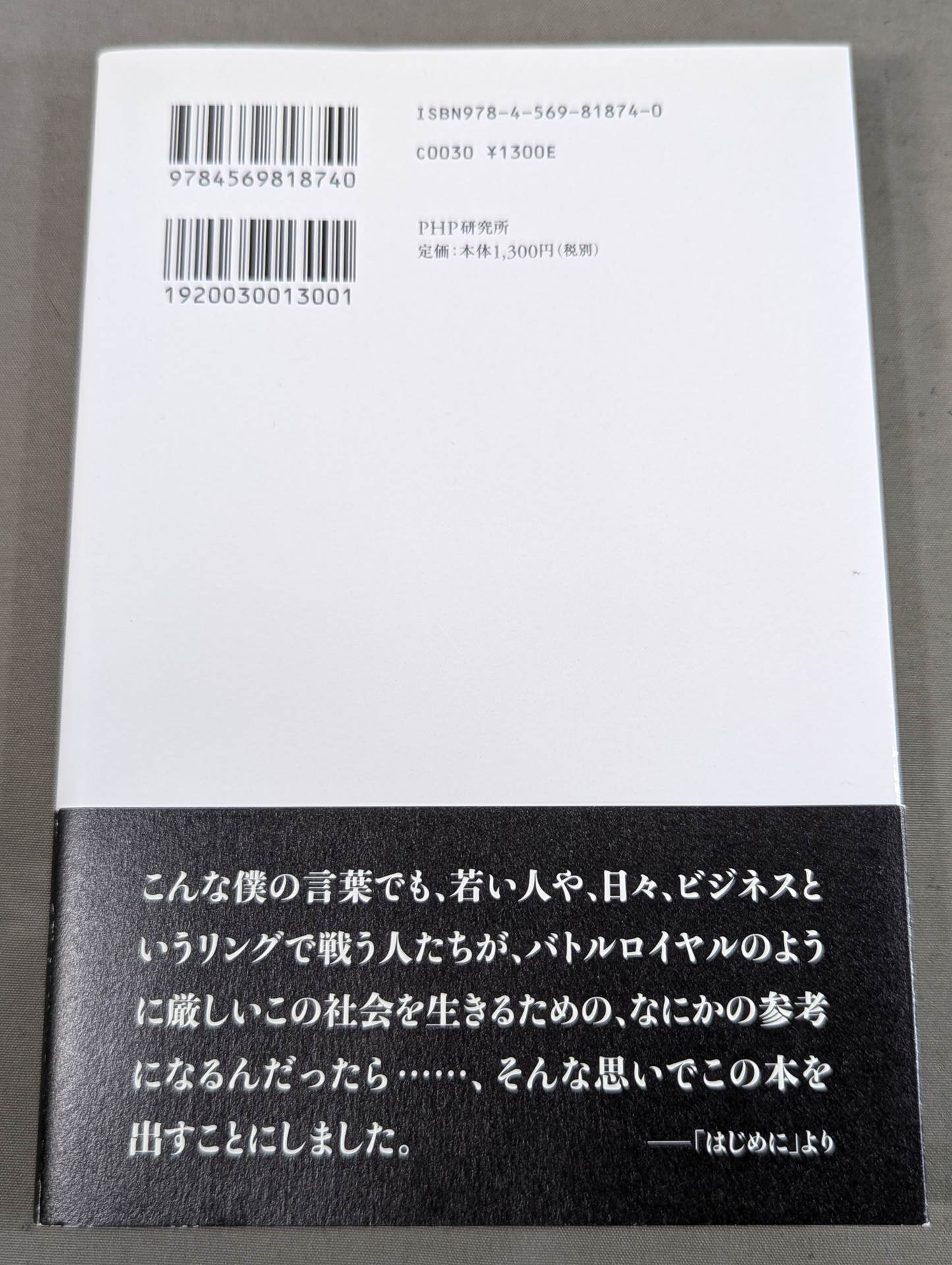 こんな僕の言葉でも、若い人や、日々、ビジネスというリングで戦う人たちが、バトルロイヤルのように厳しいこの社会を生きるための、なにかの参考になるんだったら……、そんな思いでこの本を出すことにしました。――「はじめに」より