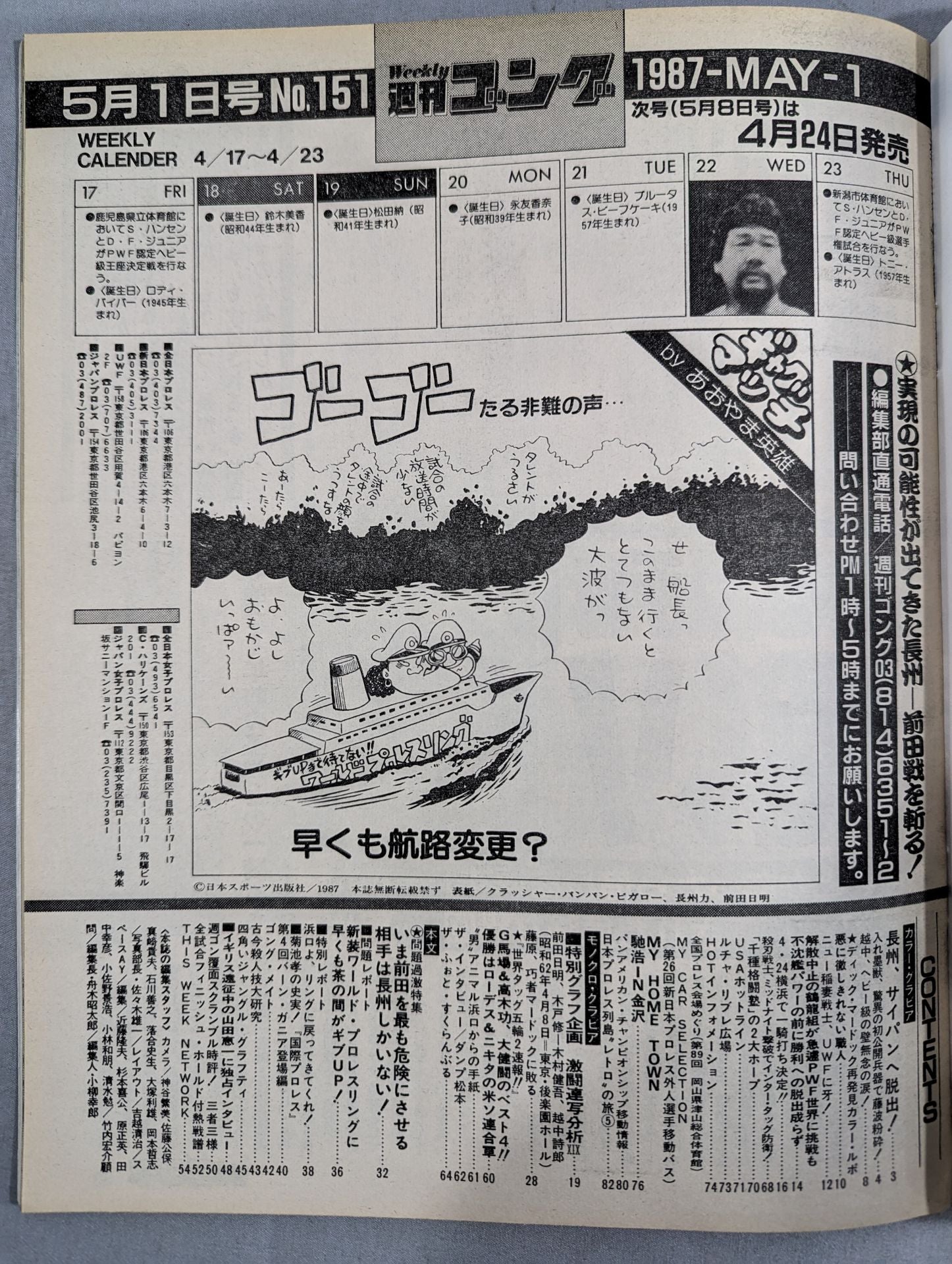 いま前田を最も危険にさせる相手は長州しかいない! 表紙:クラッシャー・バンバン・ビガロ