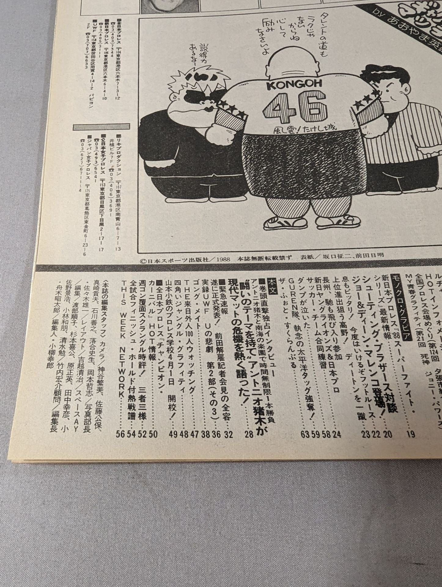 1988年 遂に正式発表!! ”前田解雇”記者会見の全容 / ピンナップ:馳浩 表紙:坂口征二