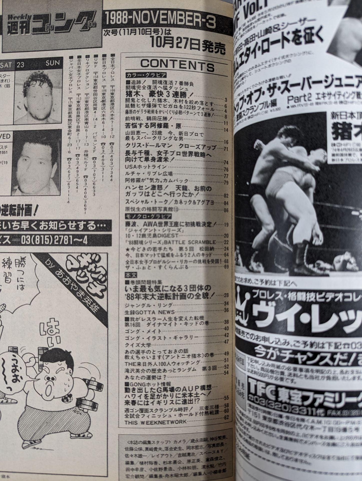 全日、新日、UWF...3団体 '88年暮の逆転計画!! / ピンナップ:長与千種 / 表紙:アントニオ猪木
