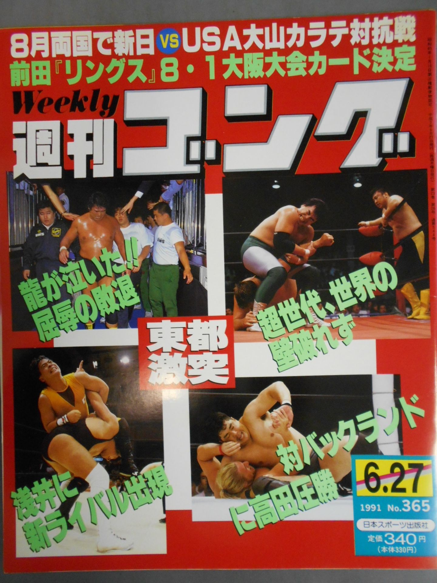 8月両国で新日vsUSA大山カラテ対抗戦 / ピンナップカレンダー:スコット・ノートン 表紙:天龍源一郎、高田延彦、浅井嘉浩