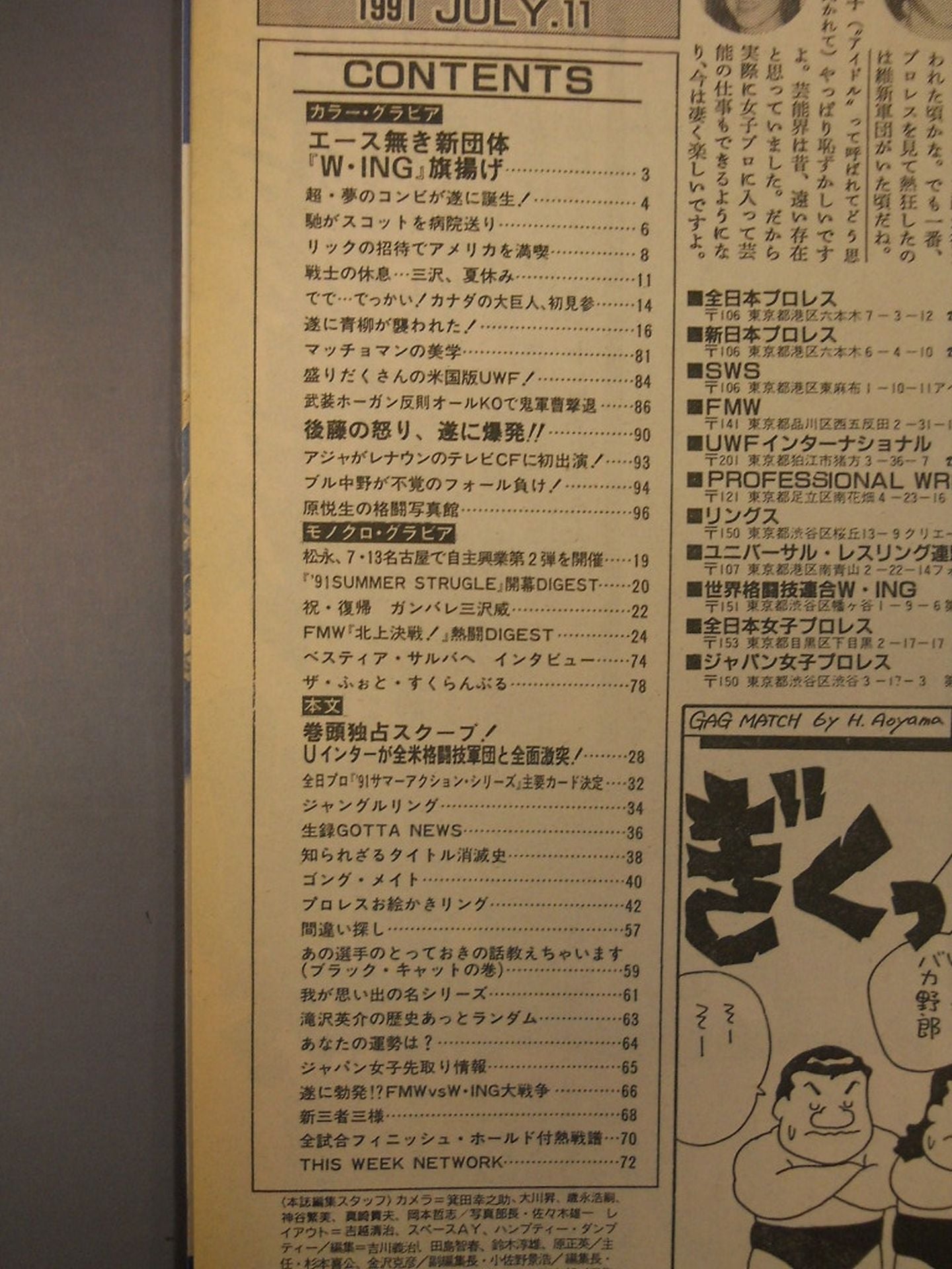 新団体『W・ING』誕生! 8・7後楽園でプレ旗揚げ / ピンナップ:ランディ・サベージ / 表紙:武藤敬司、蝶野正洋、馳浩