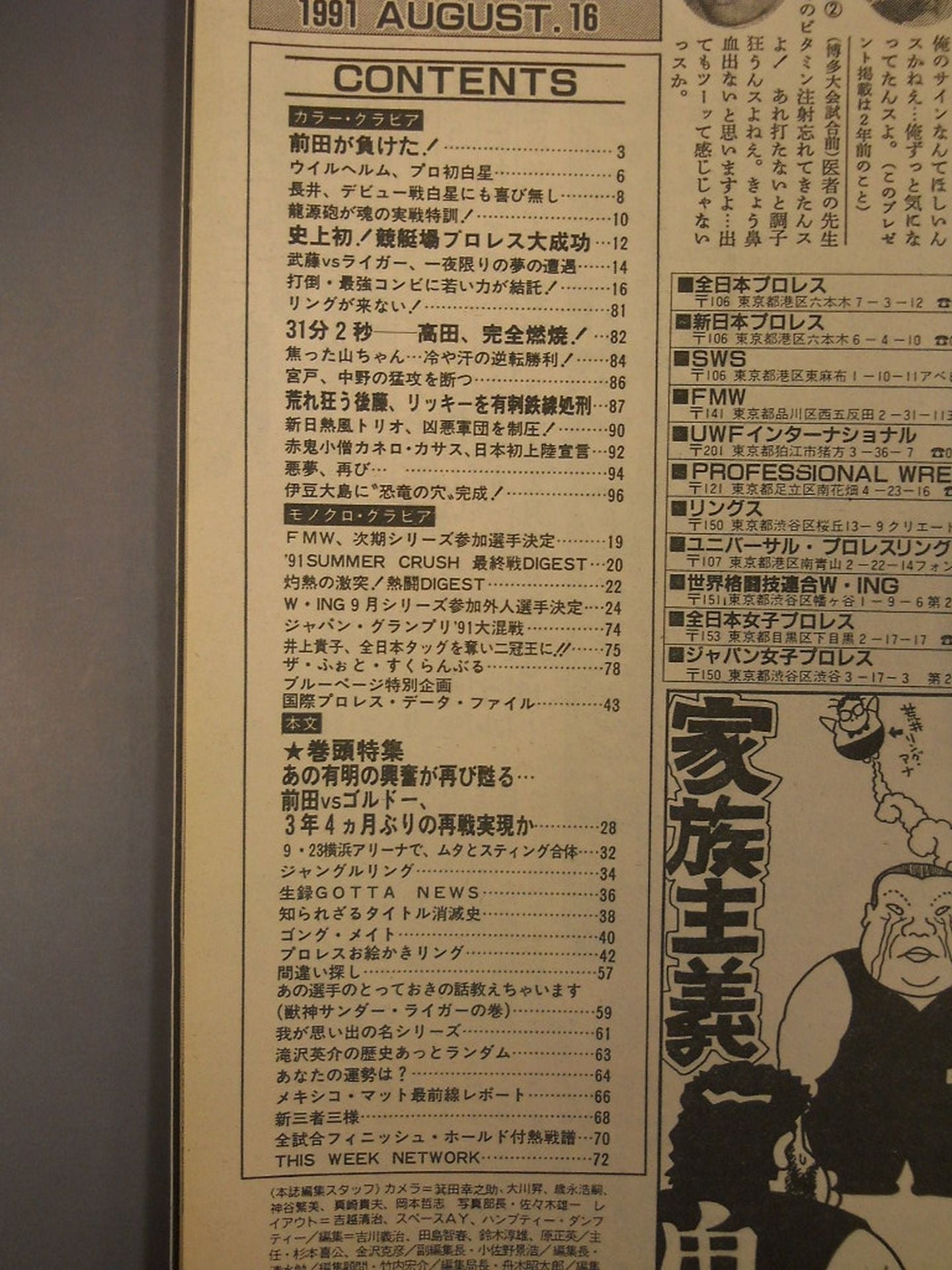 真夏の夜の悪夢、まさか!前田惨敗 / ピンナップ:天龍源一郎、阿修羅・原 / 表紙:前田日明