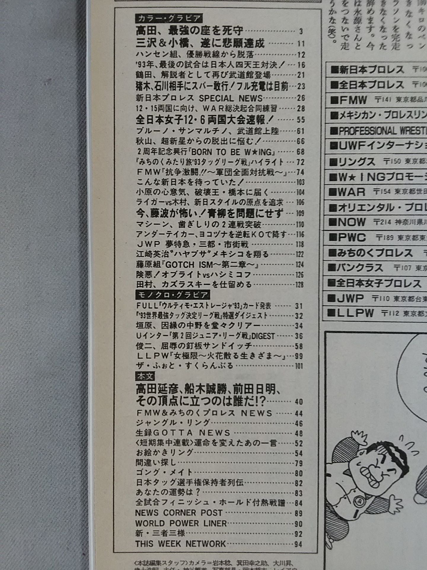1993年 真冬の神宮球場46817人を熱狂させた! 高田、皇帝戦士ベイダーを撃沈!! 表紙:高田伸彦vsビッグバン・ベイダー