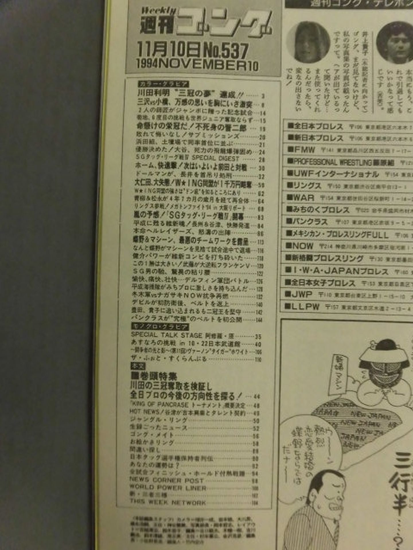 努力と流した汗は嘘をつかない!! 川田利明、苦節13年目の三冠奪取 表紙:川田利明、三沢光晴、小橋建太