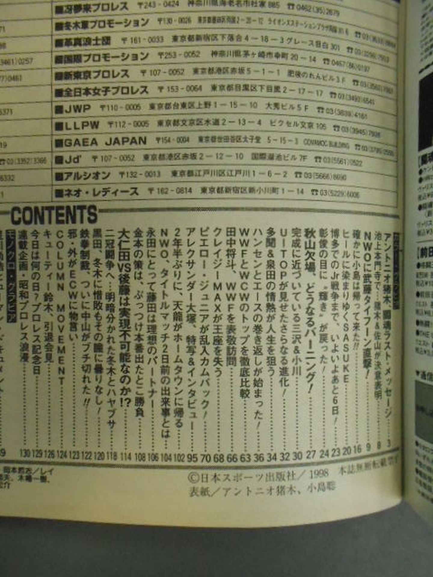 1998年 復帰戦で大ドンデン返し! 小島、電撃NOW入り 表紙:アントニオ猪木