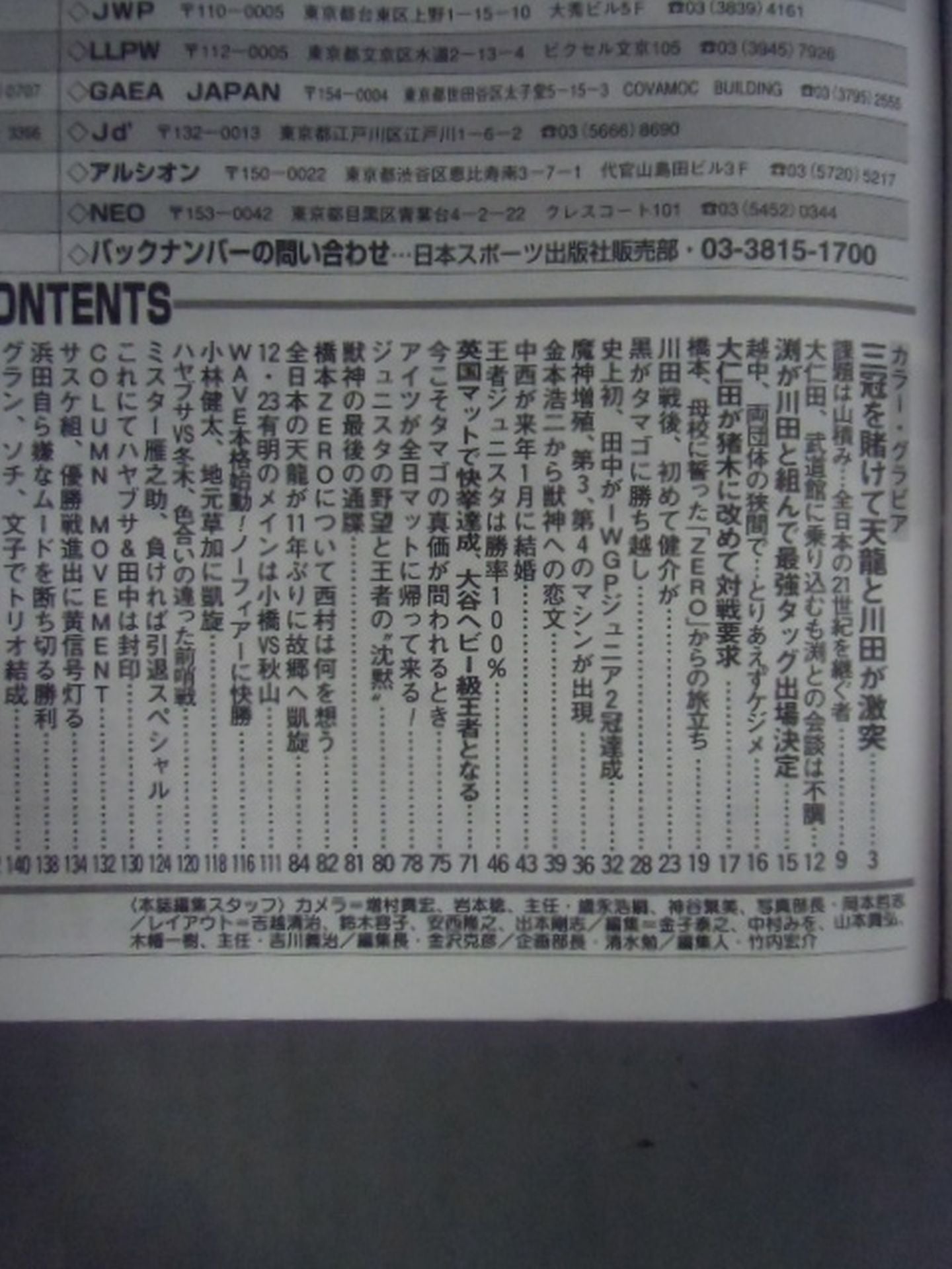 三冠ベルトは龍の手に... 見たか! 新日本 象徴はここにある!! / 解雇か? 独立容認か!? 橋本ZERO問題、大詰めへ 表紙:天龍源一郎