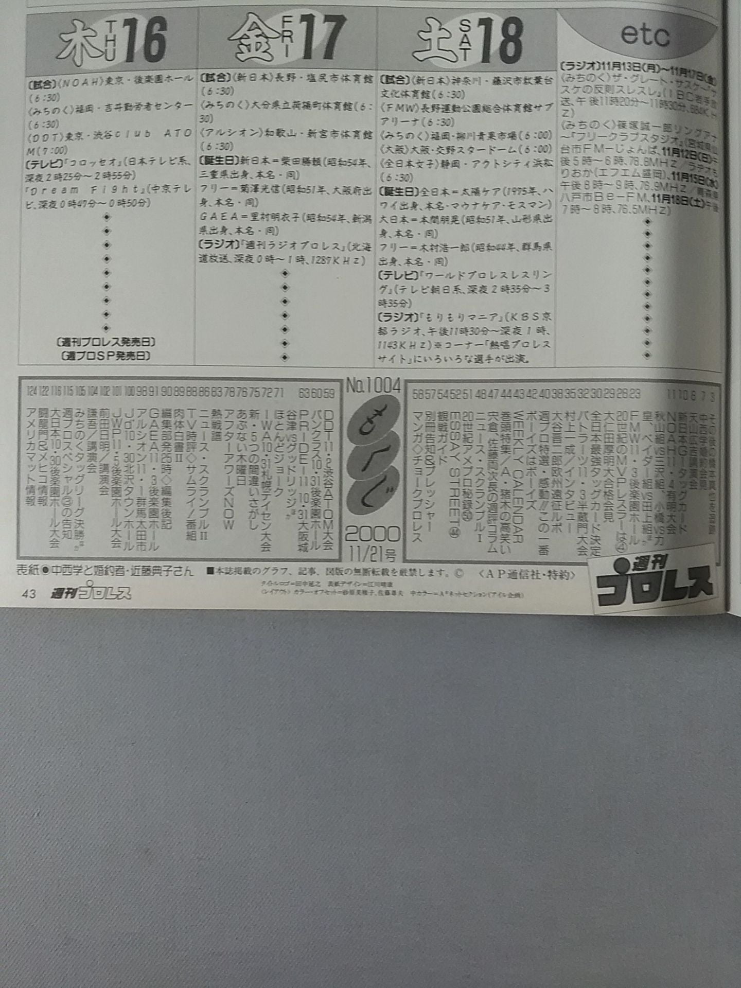2000年 金星ゲット!次はIWGP / 表紙:中西学