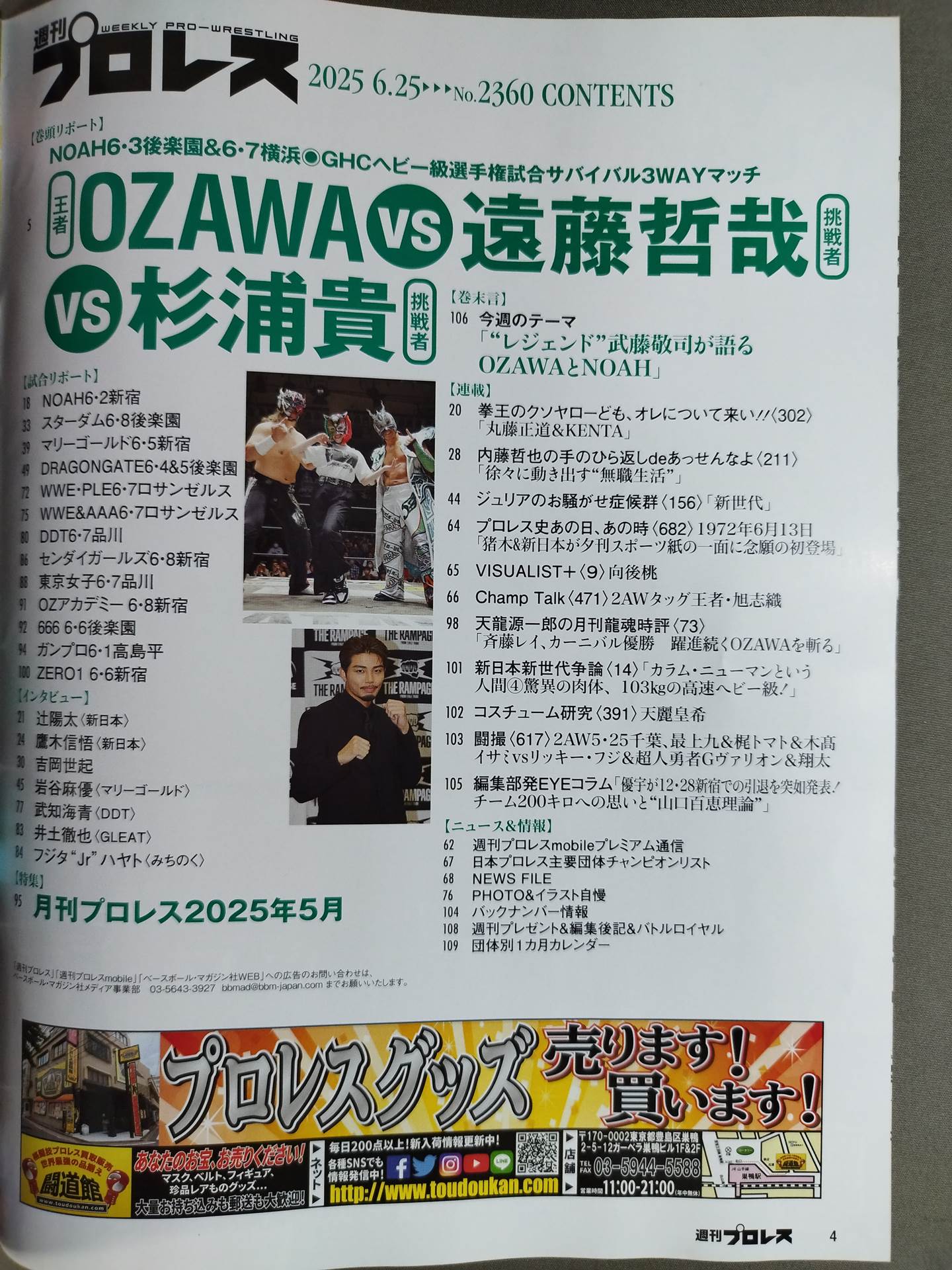 OZAWA堂々のGHCヘビーV6!杉浦貴衝撃のTEAM2000X入り / 大阪城決戦へ…辻陽太、鷹木信悟に聞く / 武知海青DDT入団 / Sareee、IWGP取り好発進 / スーパーフライV1岩谷麻優を直撃 / 望月成晃ドリームゲート奪取ならず / 表紙:OZAWA、杉浦貴