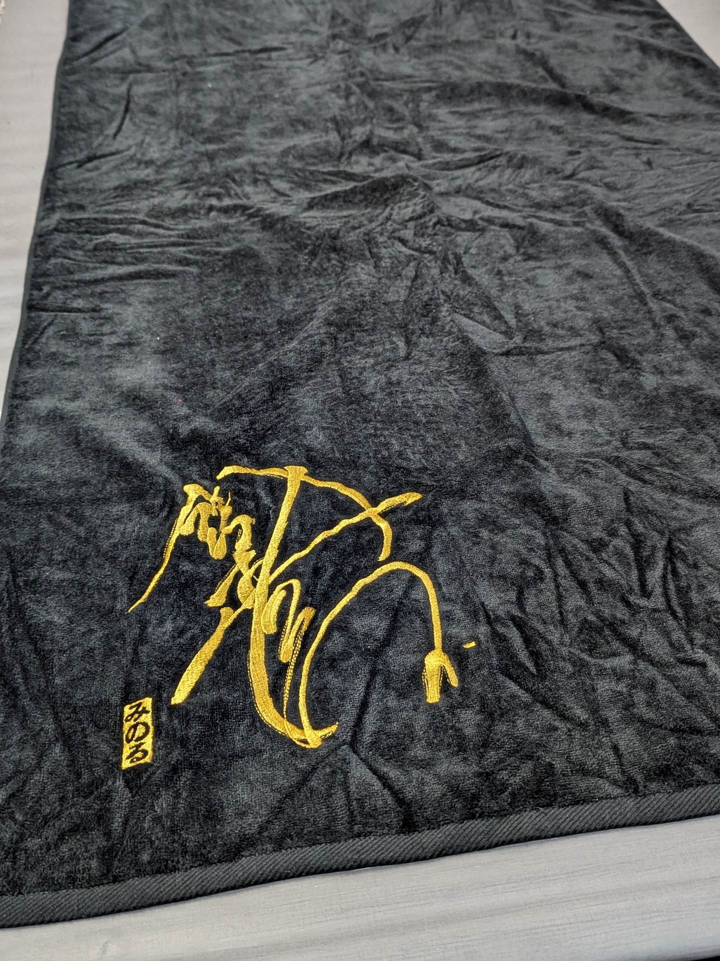 鈴木みのる サイン刺繍 バスタオル(黒)