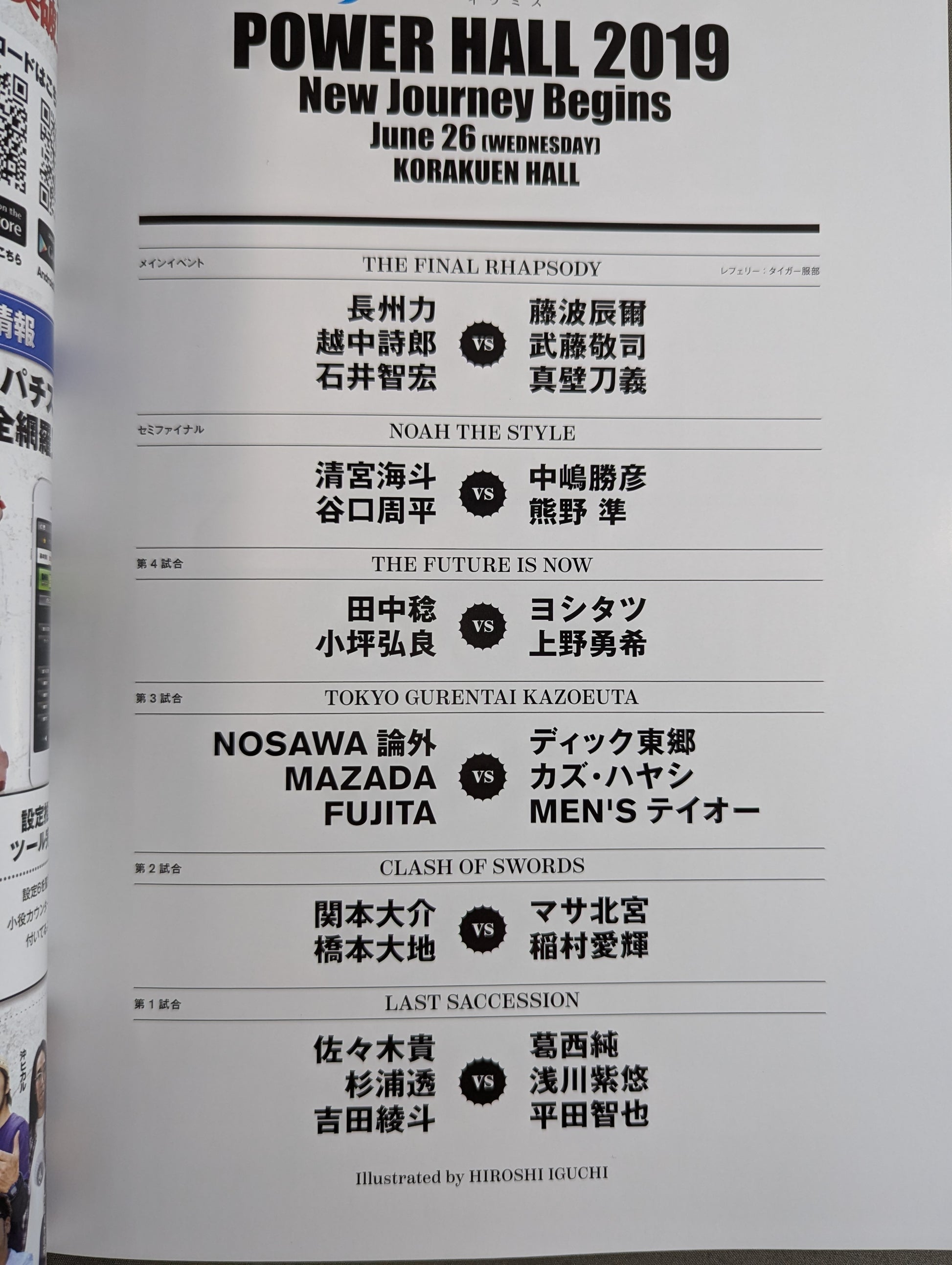 会場:後楽園ホール / 印刷対戦カード:★長州 2度目の引退試合★長州力&越中詩郎&石井智宏vs藤波辰爾&武藤敬司&真壁刀義 / パワーホール2019