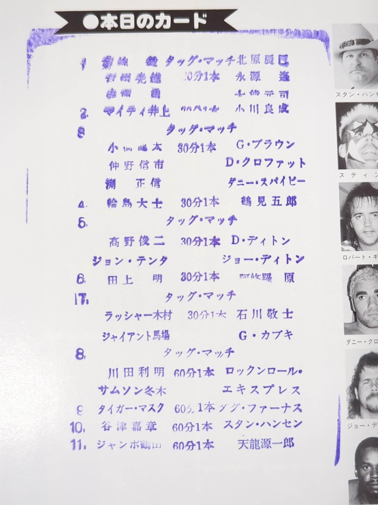 会場:横浜文化体育館(最終戦) / スタンプあり:ジャンボ鶴田vs天龍源一郎 / 谷津嘉章vsスタン・ハンセン / タイガーマスクvsダグ・ファーナス