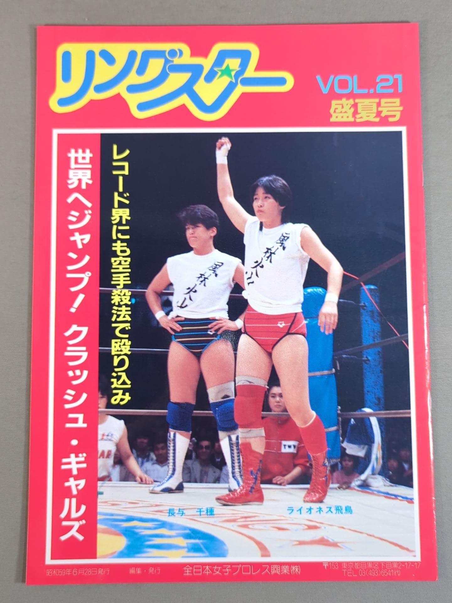 レコード界にも空手殺法で殴り込み / 世界へジャンプ!クラッシュギャルズ / 表紙:長与千種、ライオネス飛鳥 / 裏表紙:ダンプ松本、クレーン・ユウ