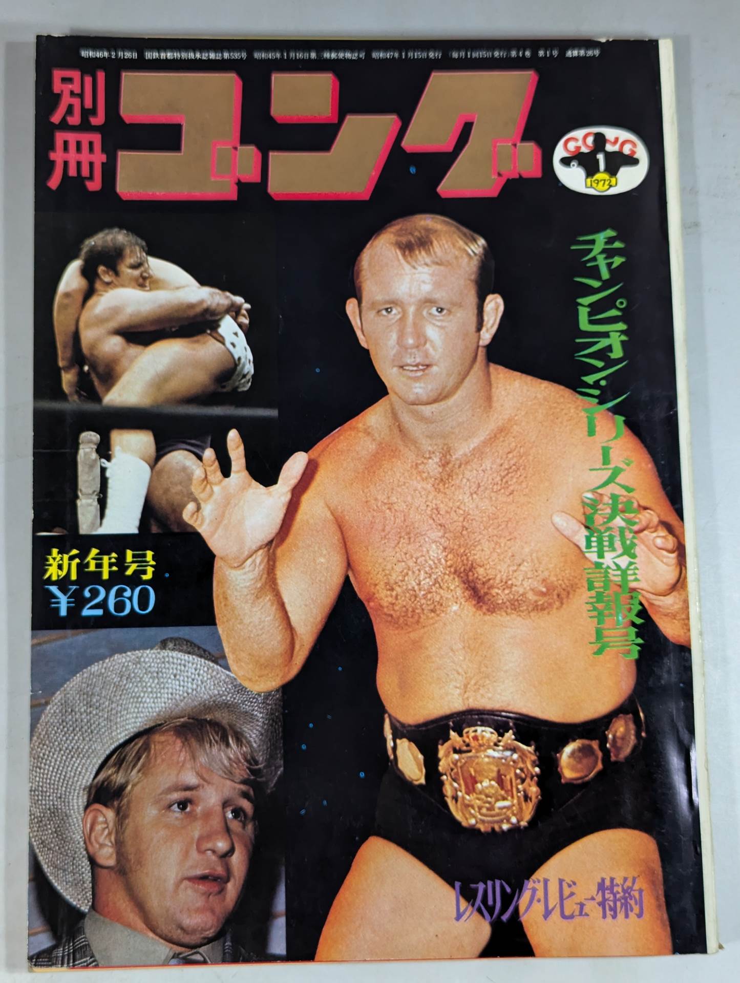 チャンピオン・シリーズ決戦詳報号 / 【付録】◯ポストカード(カール・ゴッチ) ◯ゴング・ミニ・プロマイド ◯ピンナップ(ブルーノ・サンマルチノ) ×白黒ジャンボポスター(エル・シコデリコ&ミル・マスカラス) / 表紙:ドリー・ファンク・ジュニア、ブルーノ・サンマルチノ、テリー・ファンク