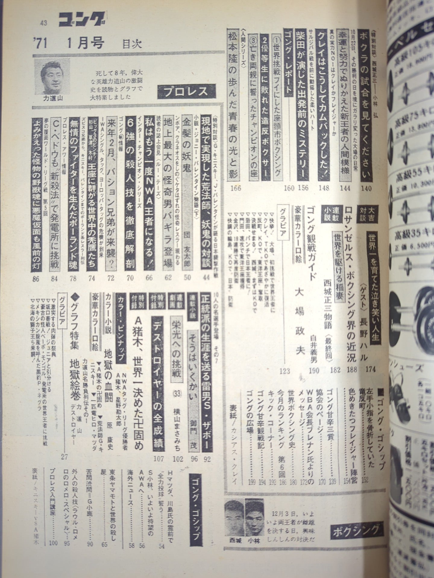 荒法師、妖鬼が現地で対談 カラー小説地獄の血闘力道山vsデストロイヤー 対決寸前!西城、小林白熱の舌戦 / 【付録】◯ピンナップ(アントニオ猪木、星野勘太郎) ◯特別付録(デストロイヤーの全成績) ×ジャンボピンナップ(アントニオ猪木vsニック.ボックウインクル)