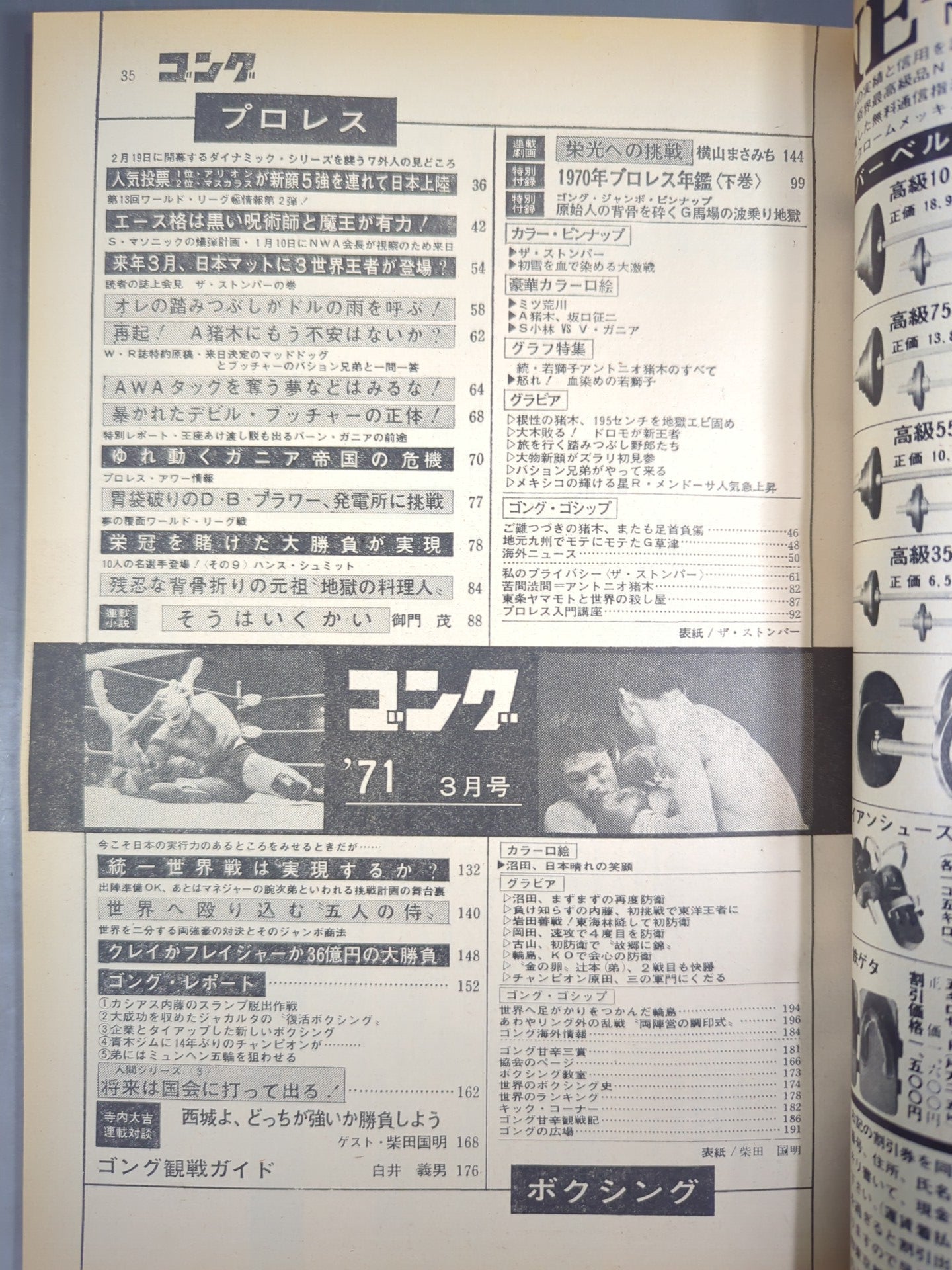1971年 ダイナミック・シリーズ展望! 第13回Wリーグ【秘】情報第2弾 寺内大吉対談新世界王者!柴田国明 / 【付録】◯ピンナップ(ザ・ストンパー) ◯特別付録(1970プロレス年鑑 下巻) ×ジャンボピンナップ(ジャイアント馬場vsザ・ケンタッキアン) 表紙:ザ・ストンパー