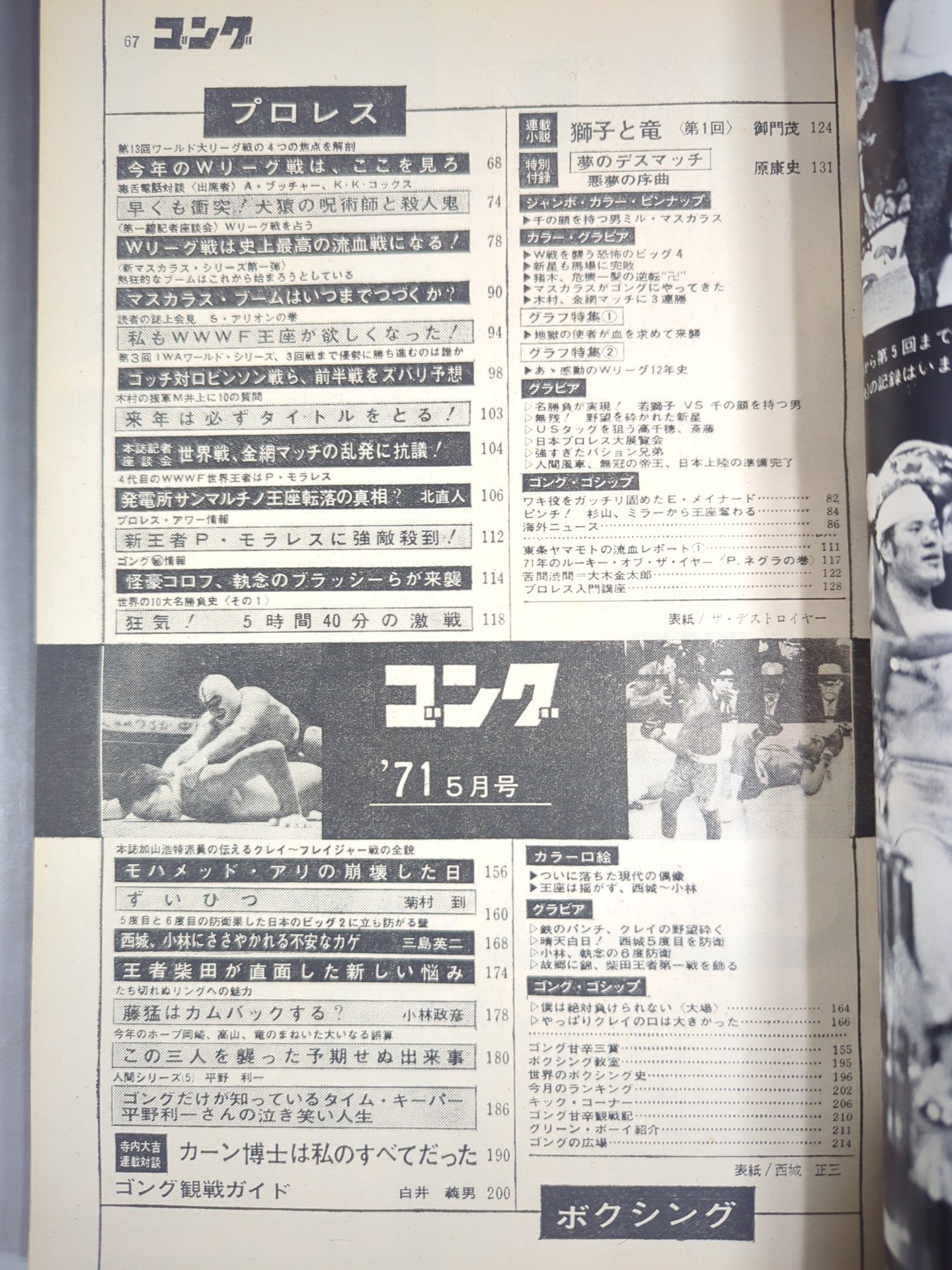 国際電話対談 アブドラ、コックスの快気炎 プロレス記者<座談会>第13回Wリーグ戦を切る! 特報! クレイ対フレイジャー戦の全貌 / 【付録】×ジャンボカラーピンナップ(ミル・マスカラス) ◯特別付録(夢のデスマッチ) 表紙:ザ・デストロイヤー、西城正三