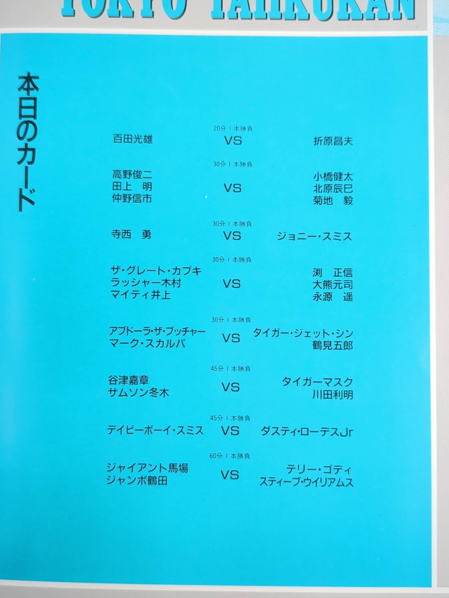 会場:東京体育館(開幕戦) / 印刷対戦カード:ジャイアント馬場&ジャンボ鶴田vsテリー・ゴディ&スティーブ・ウィリアムス / 谷津嘉章&サムソン冬木vsタイガーマスク&川田利明 / 90スーパーパワー・シリーズ