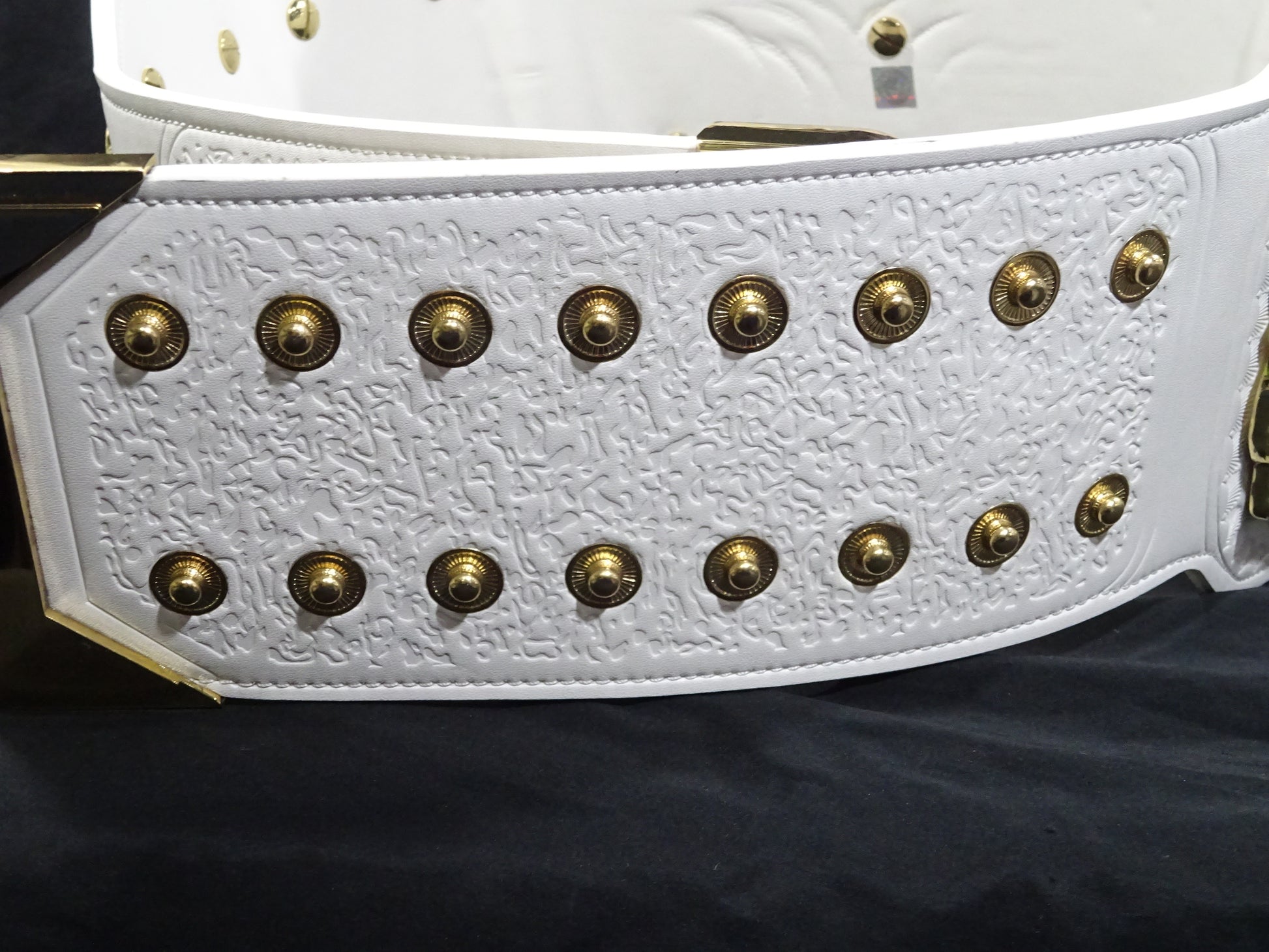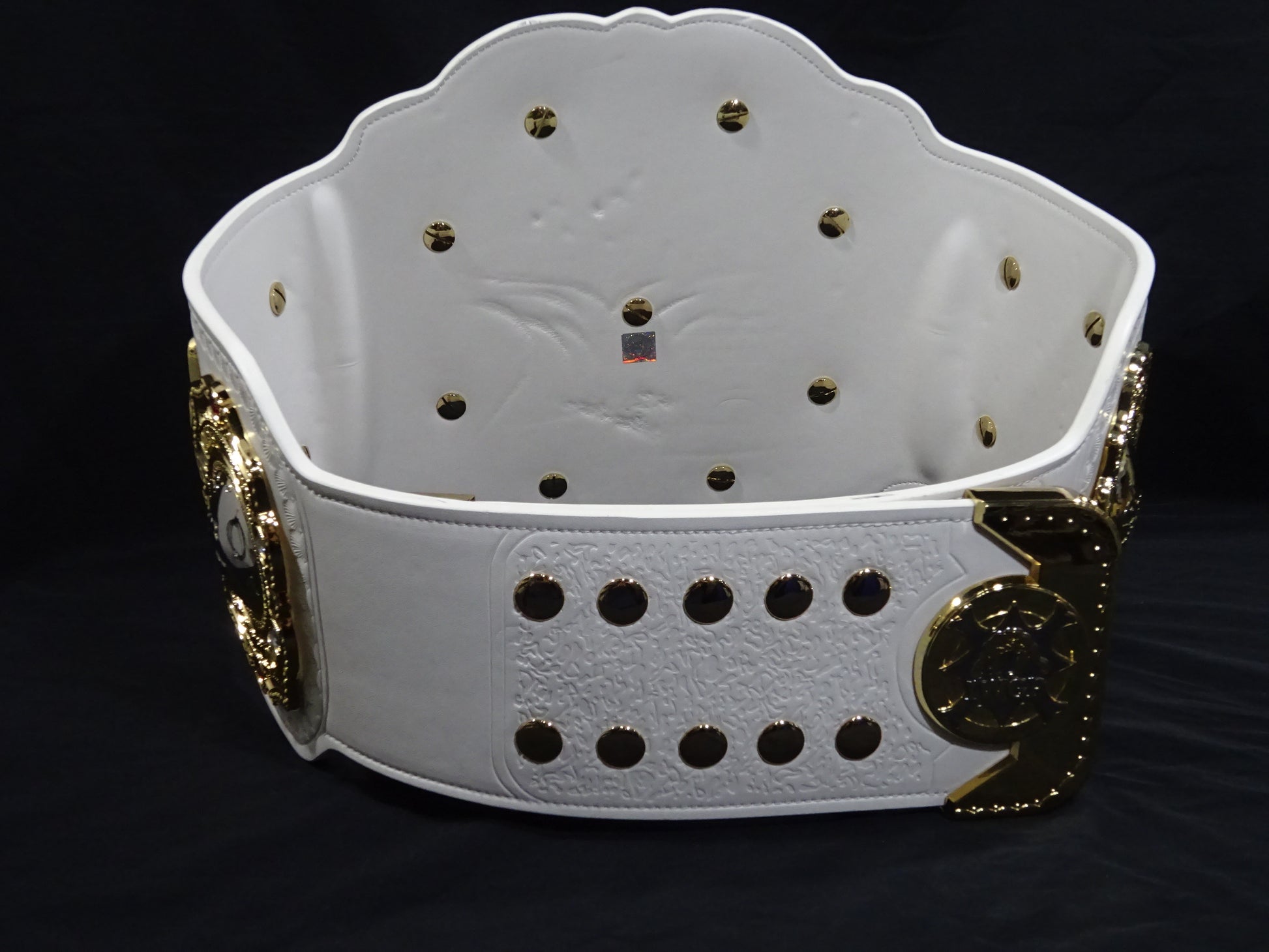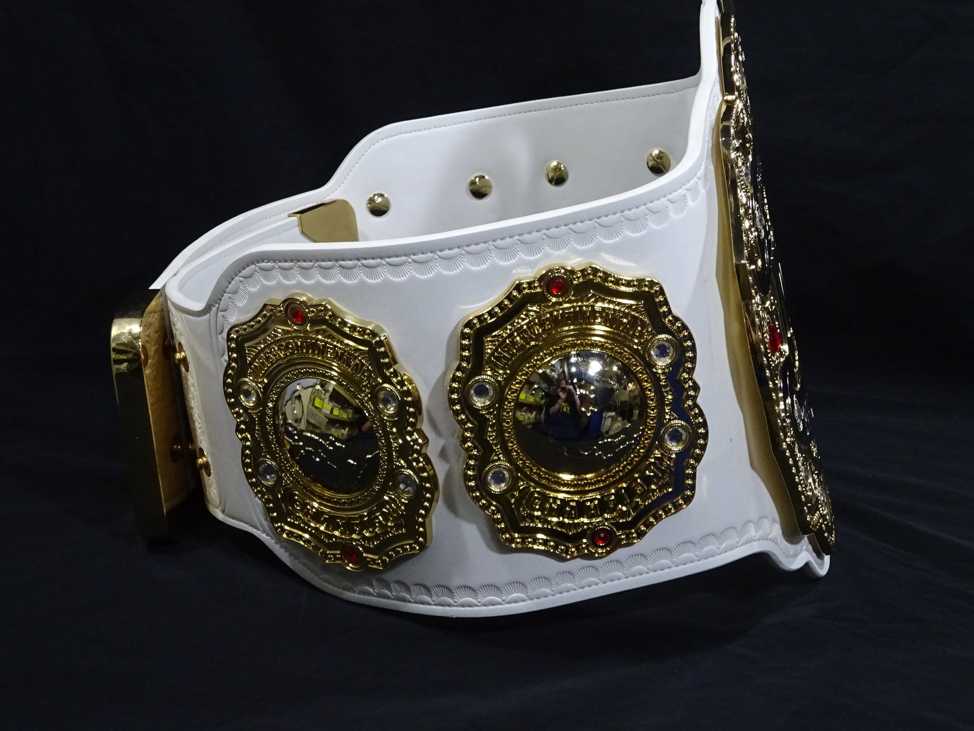 新日本プロレスが管理する「IWGPインターコンチネンタル王座(2代目モデル)」の公式レプリカベルト プロの原型師が現在の本物のベルトを採寸し、忠実に3Dデータ化して金型を製造 激闘を繰り広げる中で何度も破損・修理を繰り返しているため、ストーンカラーなどは初期段階の資料に合わせて調整 重量は約4kg、メインプレートに19個、サイド4枚のプレートには各6個、合計43個ものストーンを使用 全ダイキャストパーツのゴールド部分には18金のメッキ加工を施したプレミアム仕様 シリアルナンバー(050) サイズ(124cm×27.5cm) 重量(4kg) プレート素材(ダイキャストパーツ亜鉛合金) プレート厚み(1cmの2重構造) ベルストラップ素材(牛床革PU加工) ライオンマーク刺繍入り専用ベルトケース付(グレー・ベロア素材)