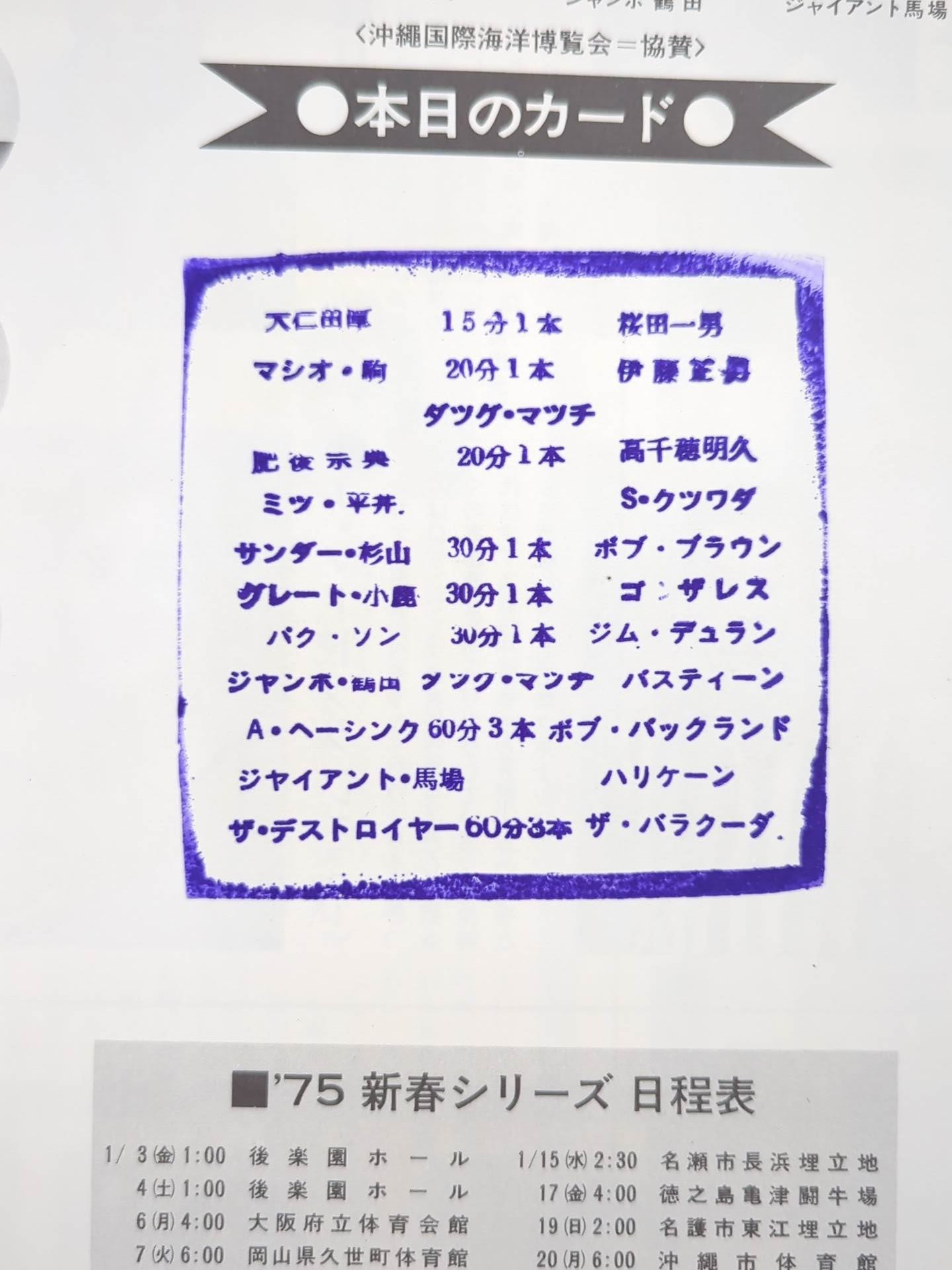 【2選手直筆サイン入り】★覆面10番勝負・第4戦★ 75新春シリーズ
