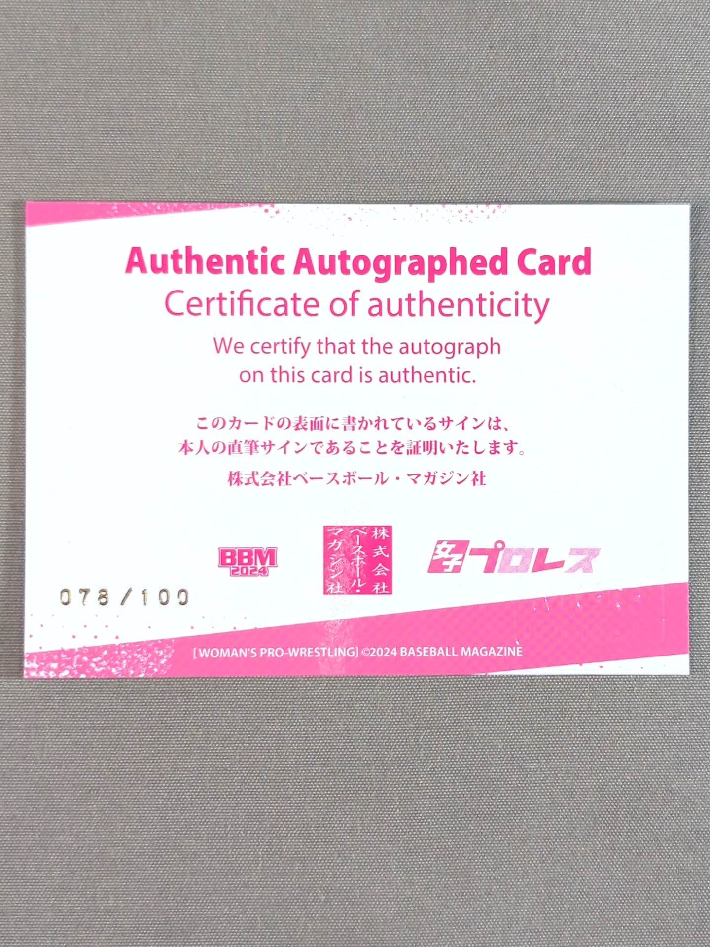 シリアルナンバー(078/100)