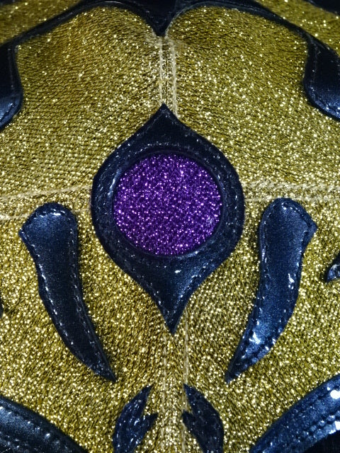 ★牙付タイプ★ サイン入り 金ラメ ブルメタ革フチ 紫ランプ