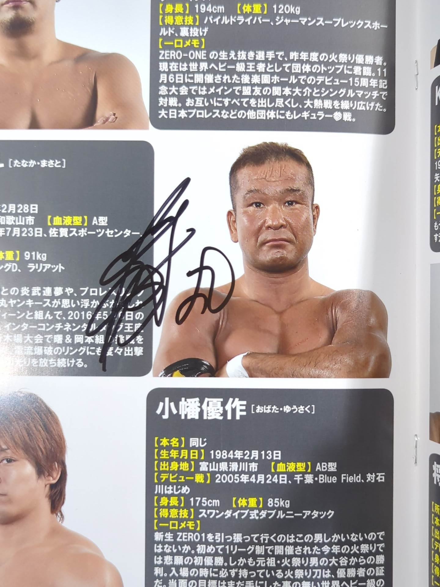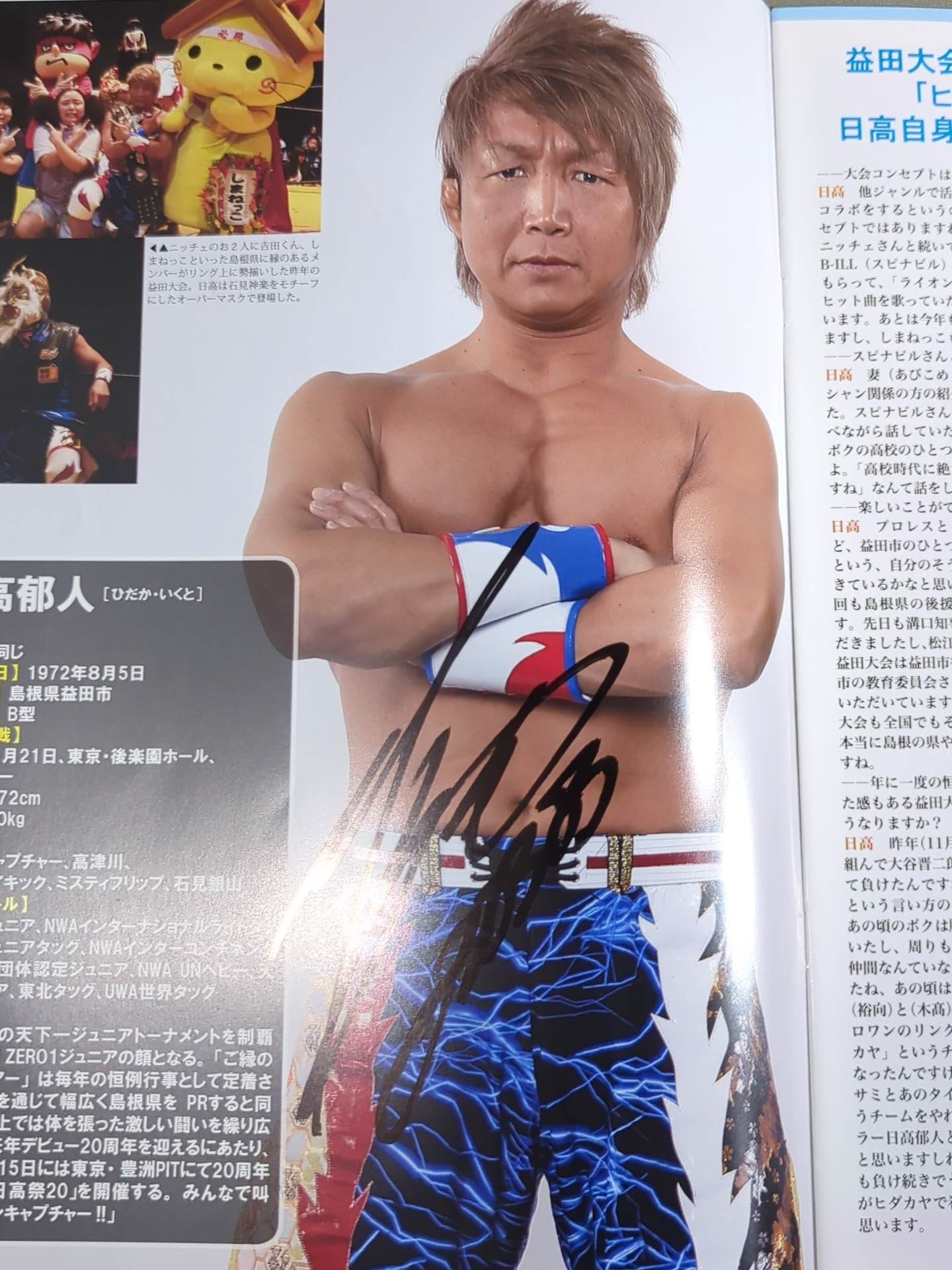 日高郁人、大谷晋二郎、田中将斗 以上 3選手直筆サイン入り!! / 会場:島根・益田市民体育館 / 印刷対戦カード:日高郁人vsHUB
