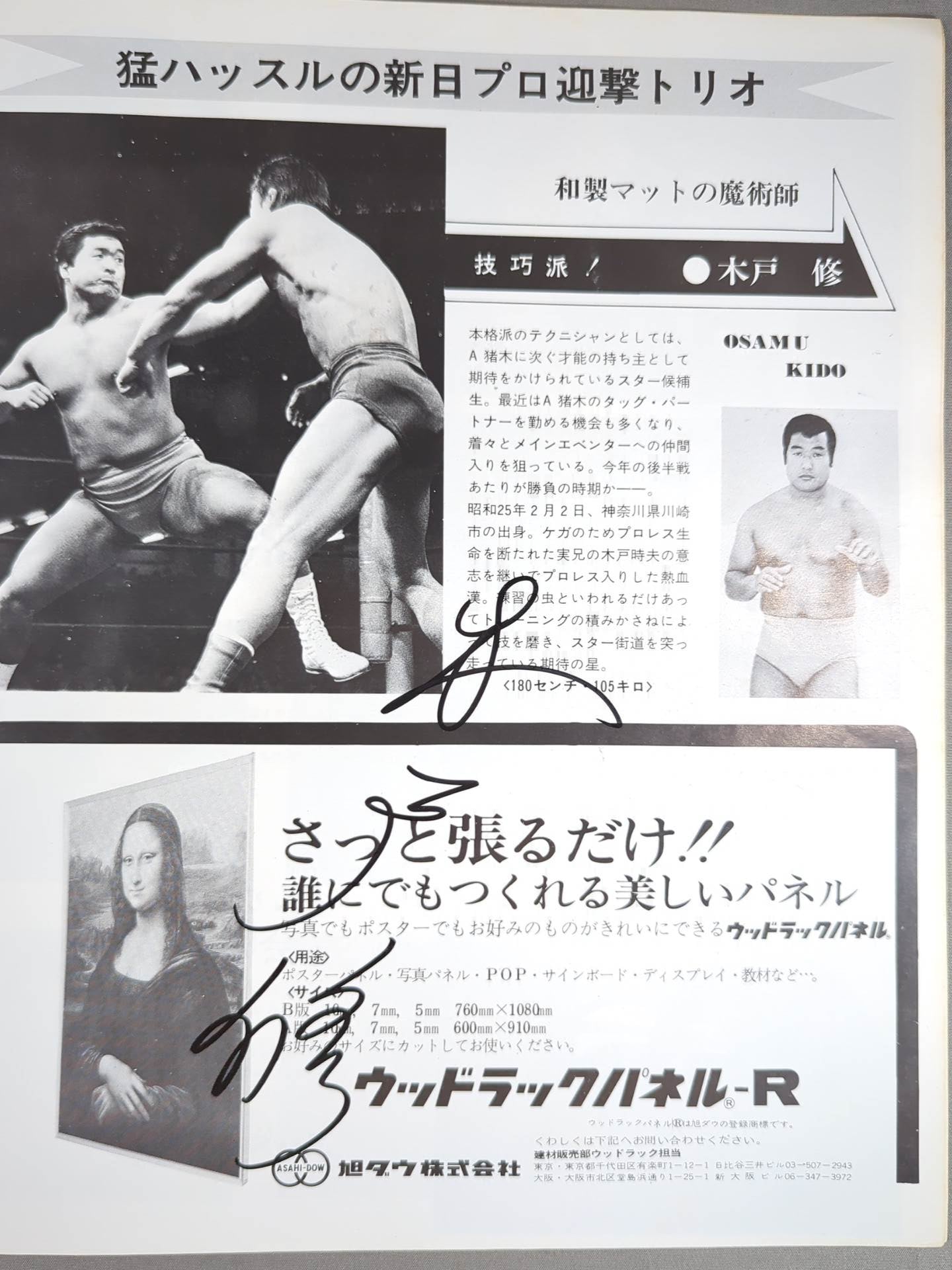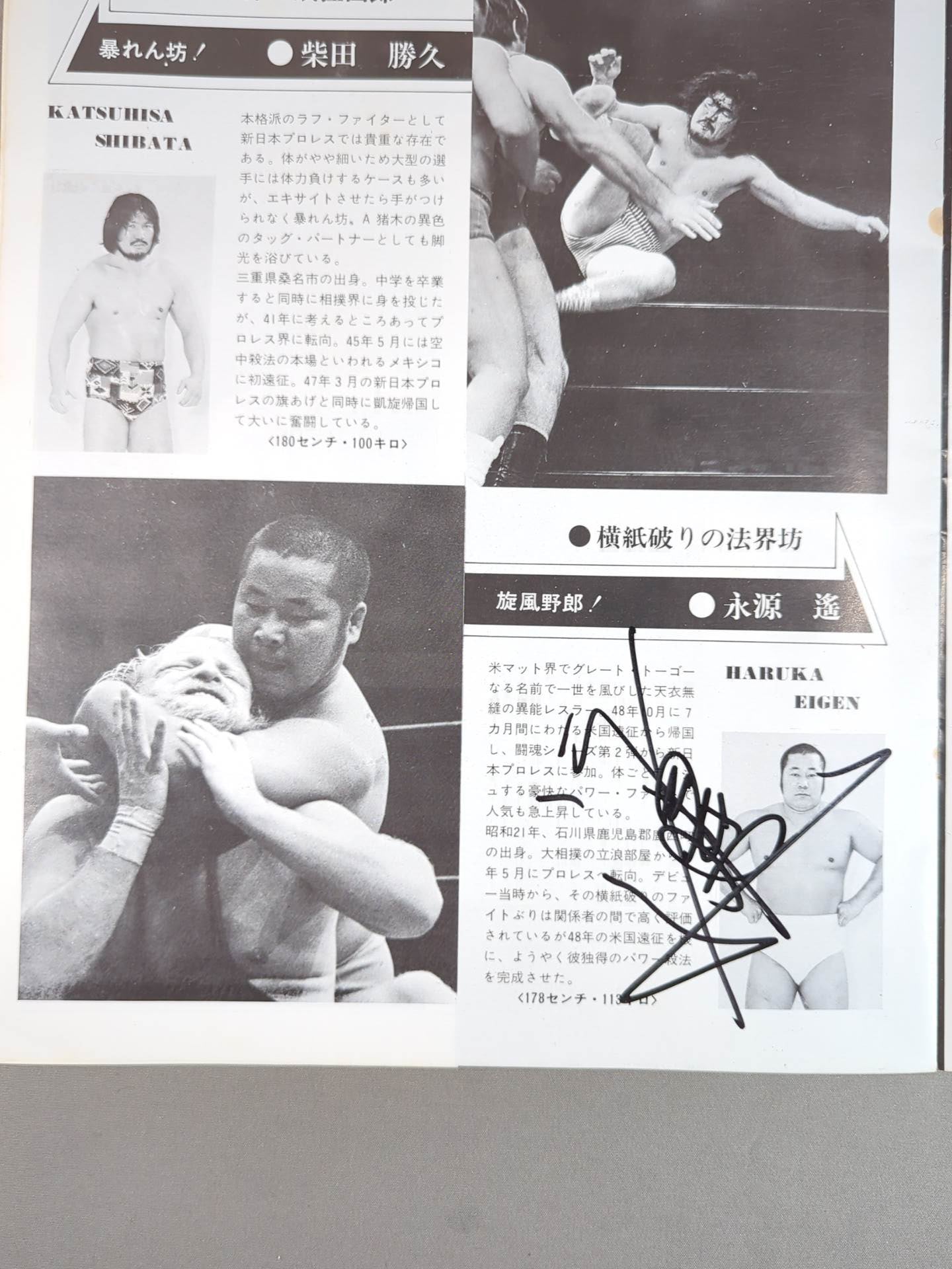 ウラカン・ラミレス(ヒューラカン・ラミレス)、永源遥、木戸修  以上 3選手直筆サイン入り!! / スタンプあり:アントニオ猪木&木戸修vsピート・ロバーツ&コーリン・ジョンソン