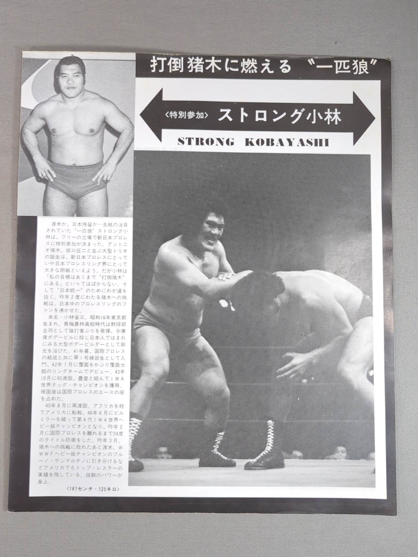 状態詳細 別紙『グラン・デ・オフィシャル章 受賞』紹介用紙、ストロング小林紹介用紙あり