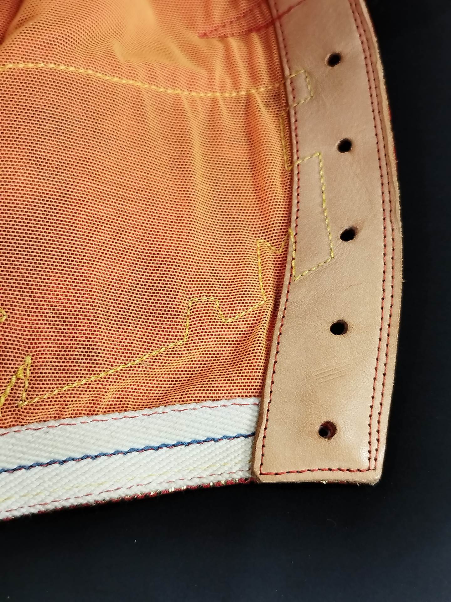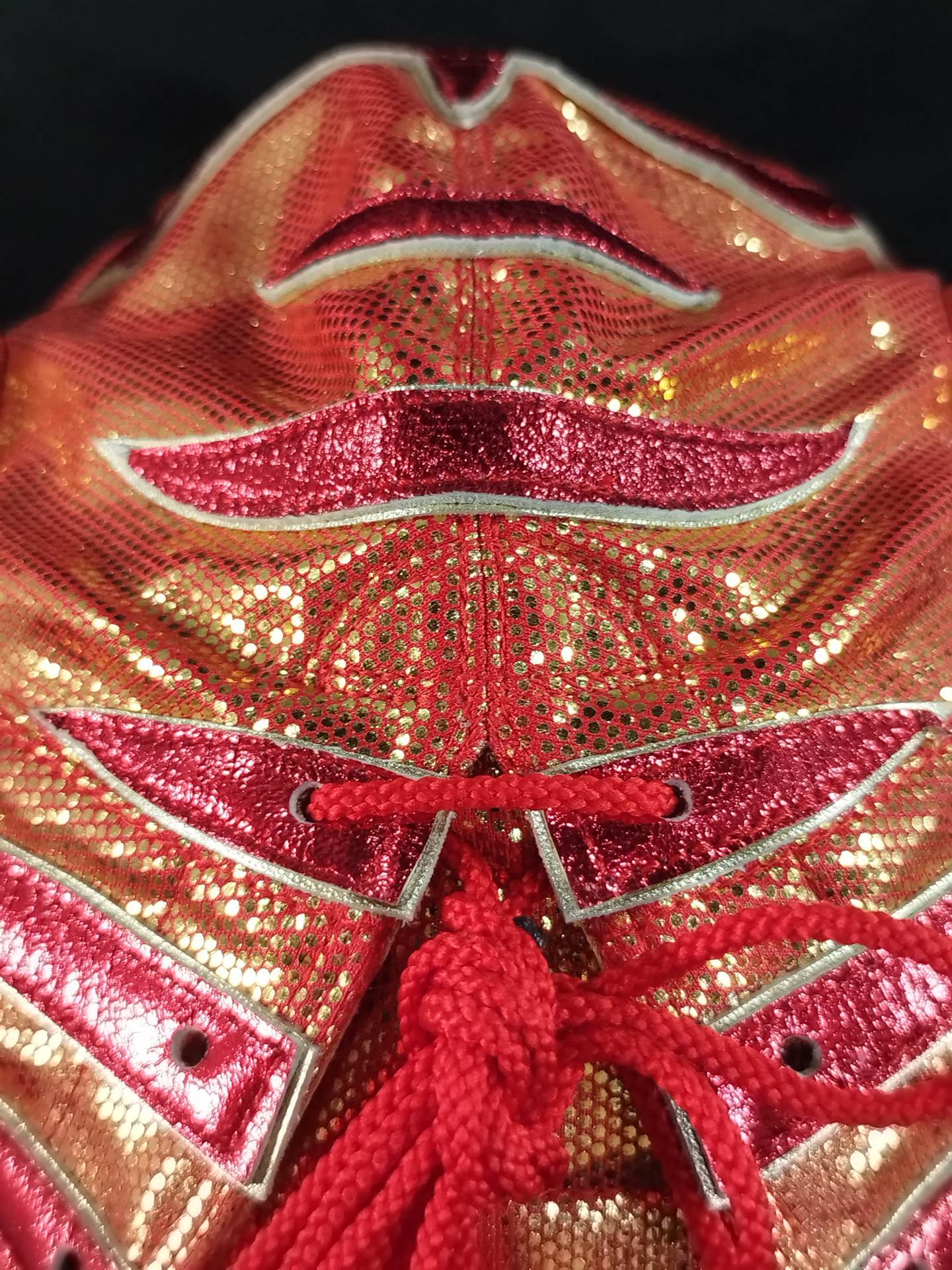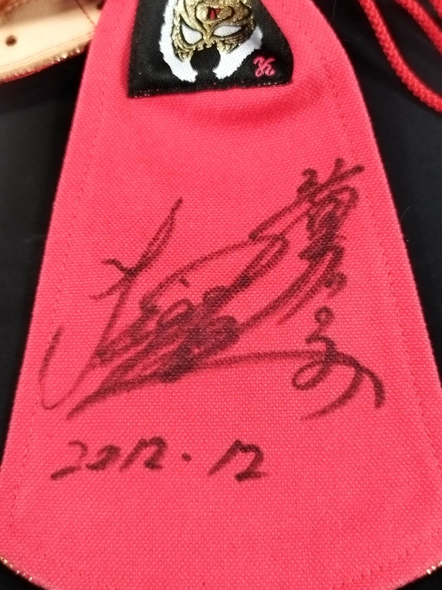 本人使用サイン入り(2012.12) 銅色特殊レオタード2重生地(メッシュ生地) 金革地赤特殊革フチ