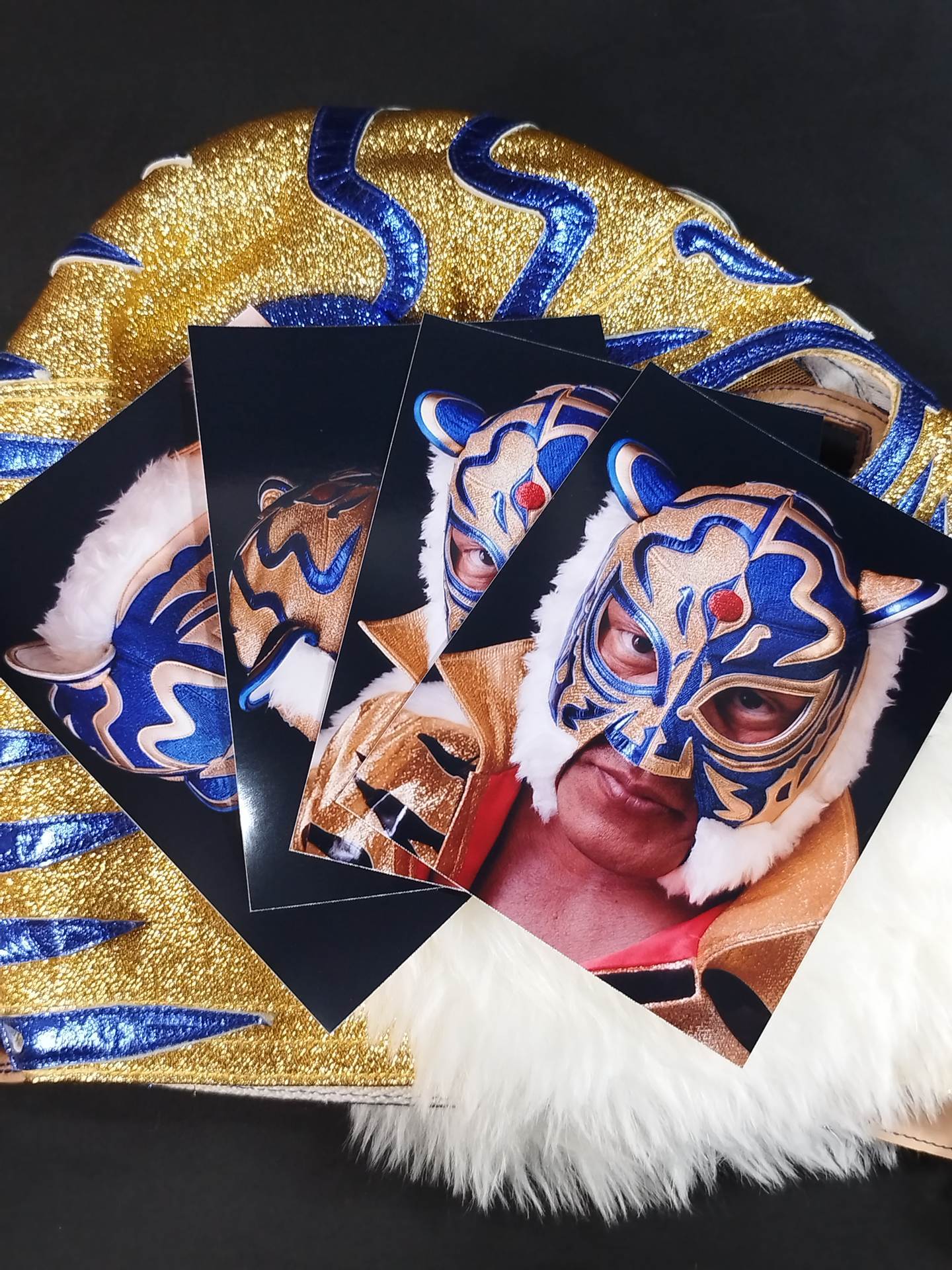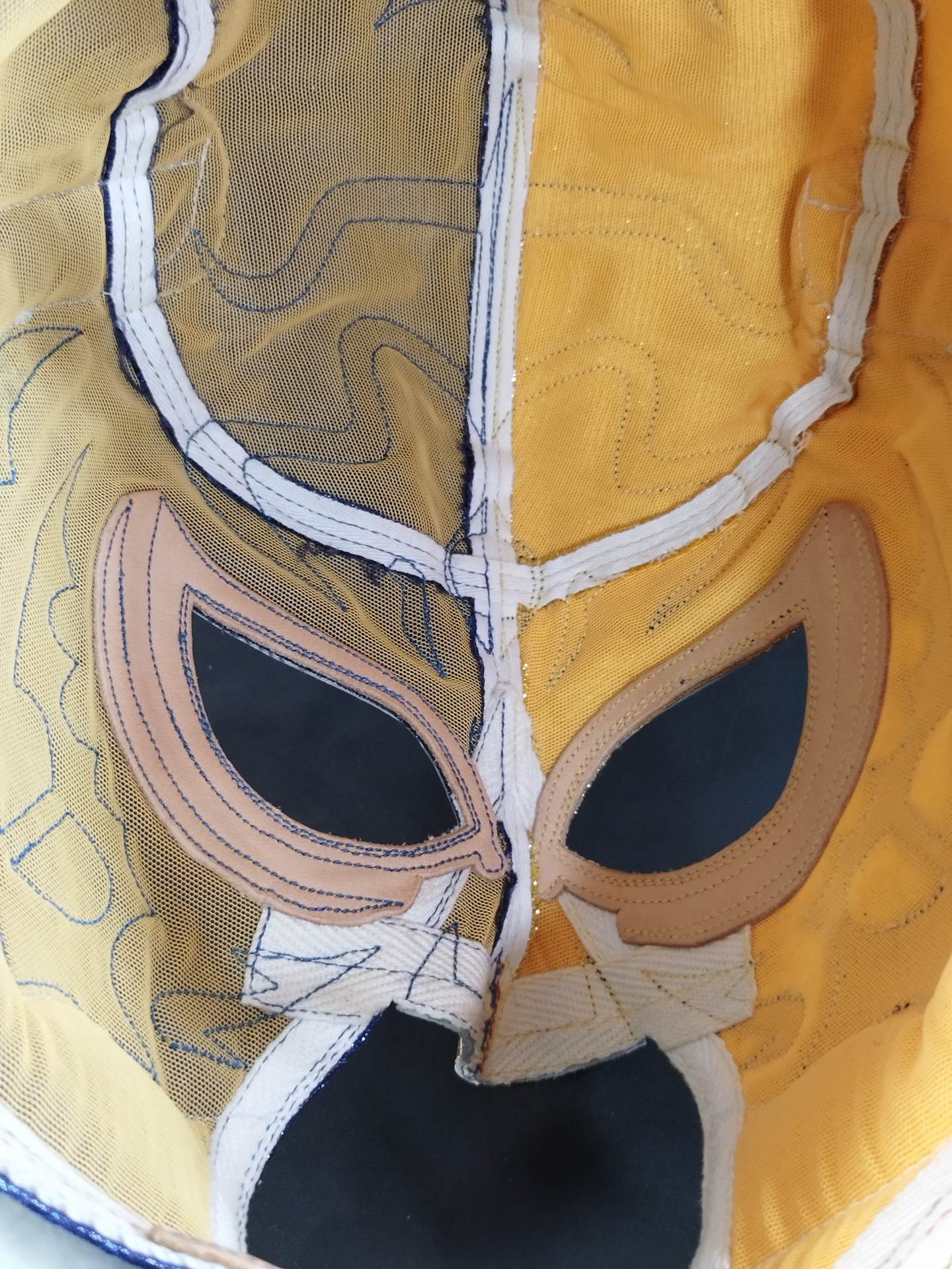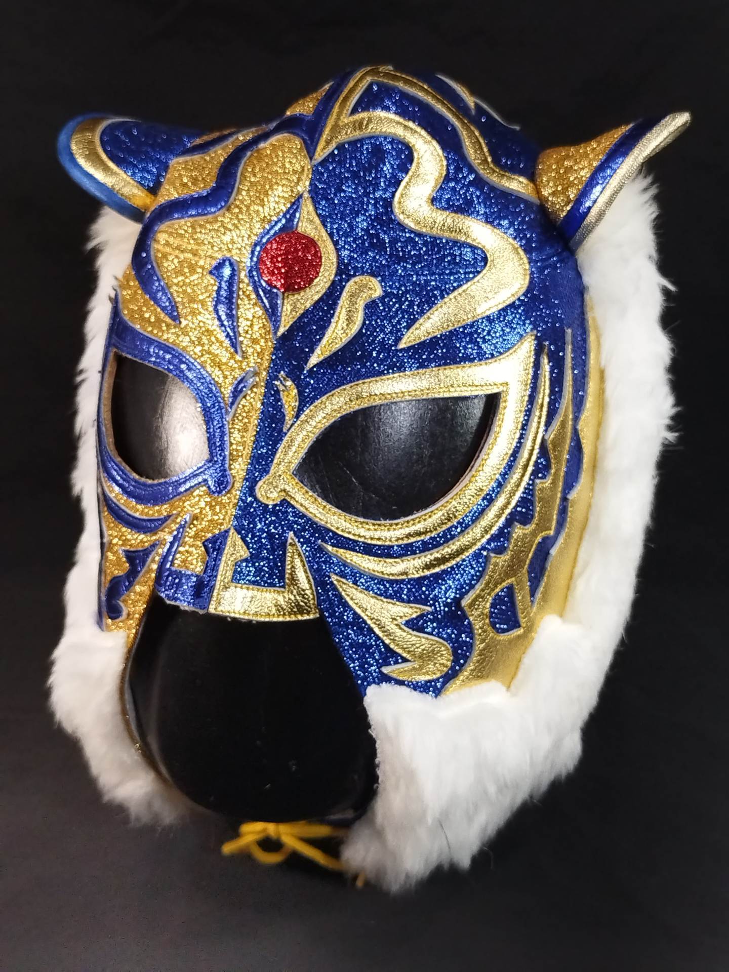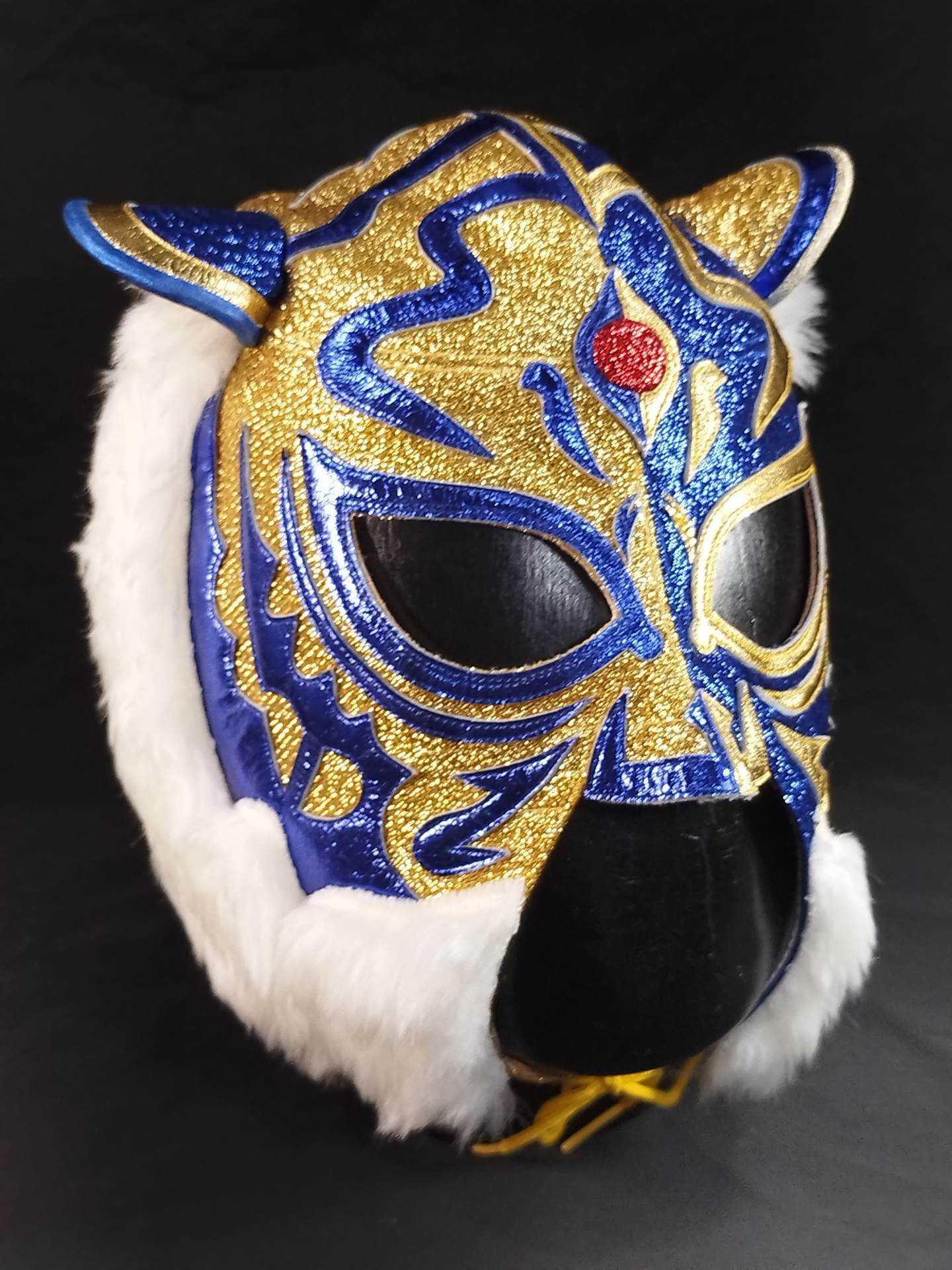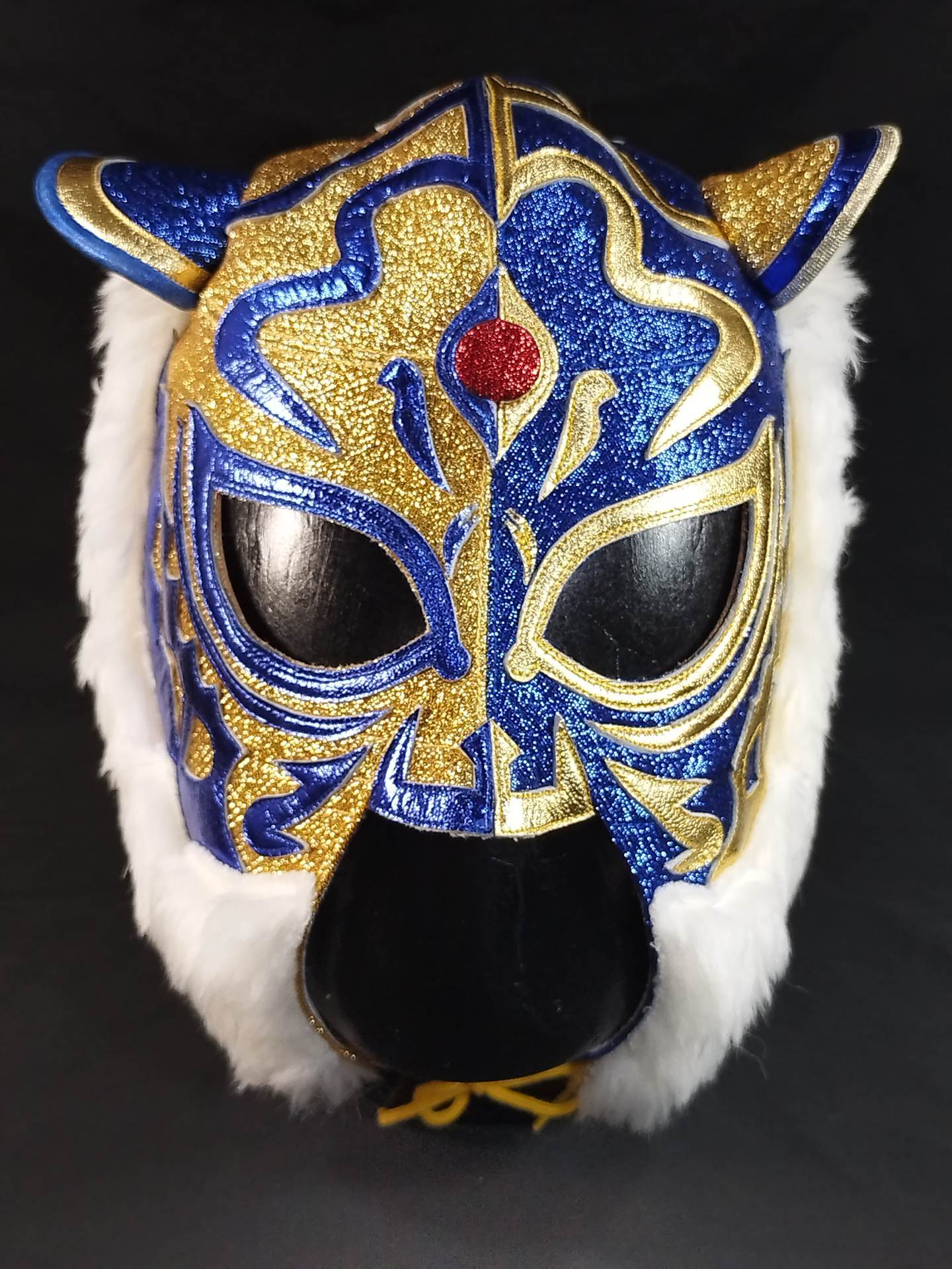 本人使用サイン入り(2022.4.10 ZEROONE 両国) 着用写真付 金&青ハーフラメ2重生地(メッシュ張り) 青特殊革フチ&金特殊革フチ 赤ランプ 2022年4月10日、東京・両国国技館で行われた「押忍PREMIUM〜ZERO1旗揚げ20周年&21周年記念大会〜プロレス」の8人タッグマッチで使用したもの