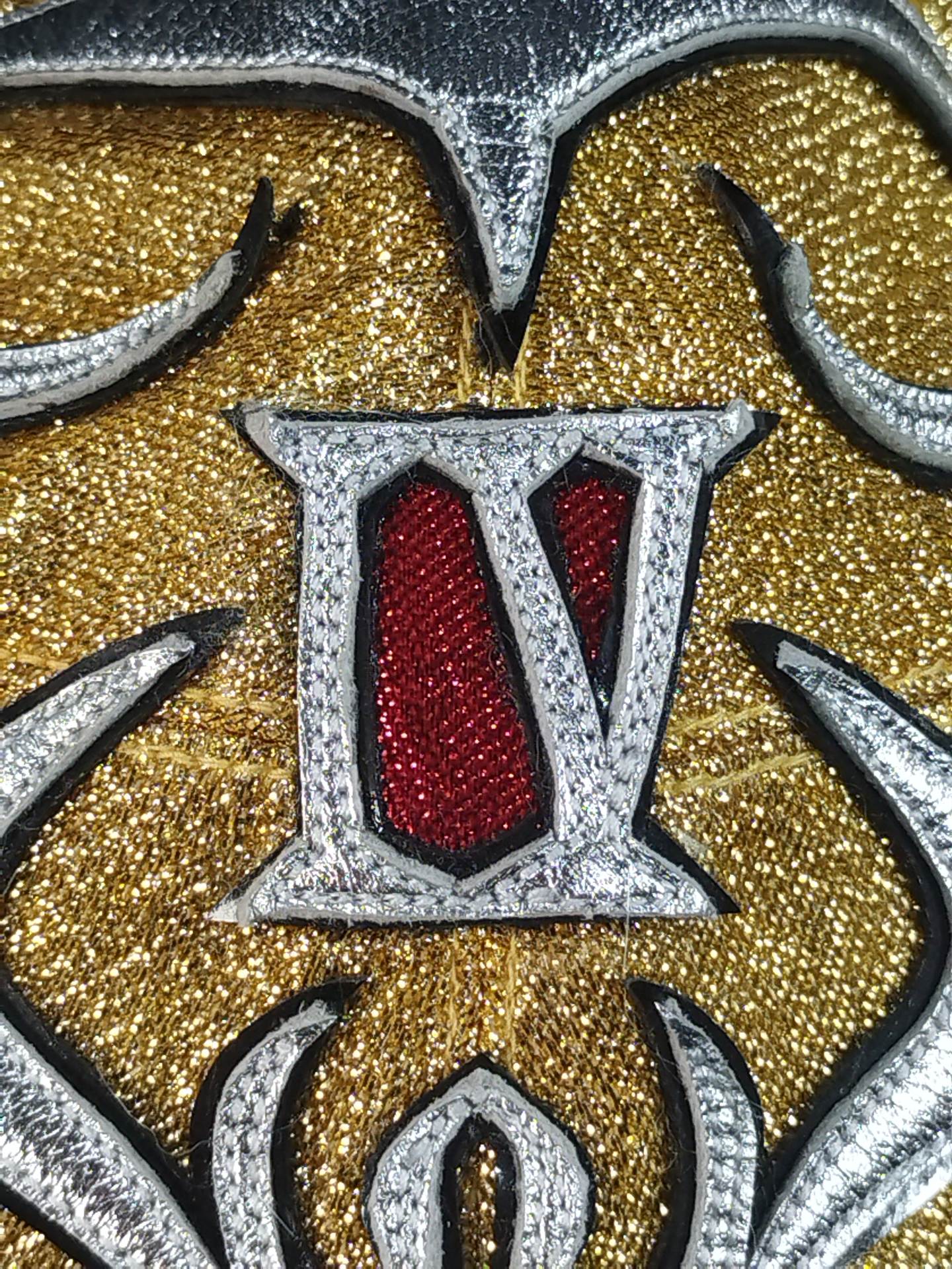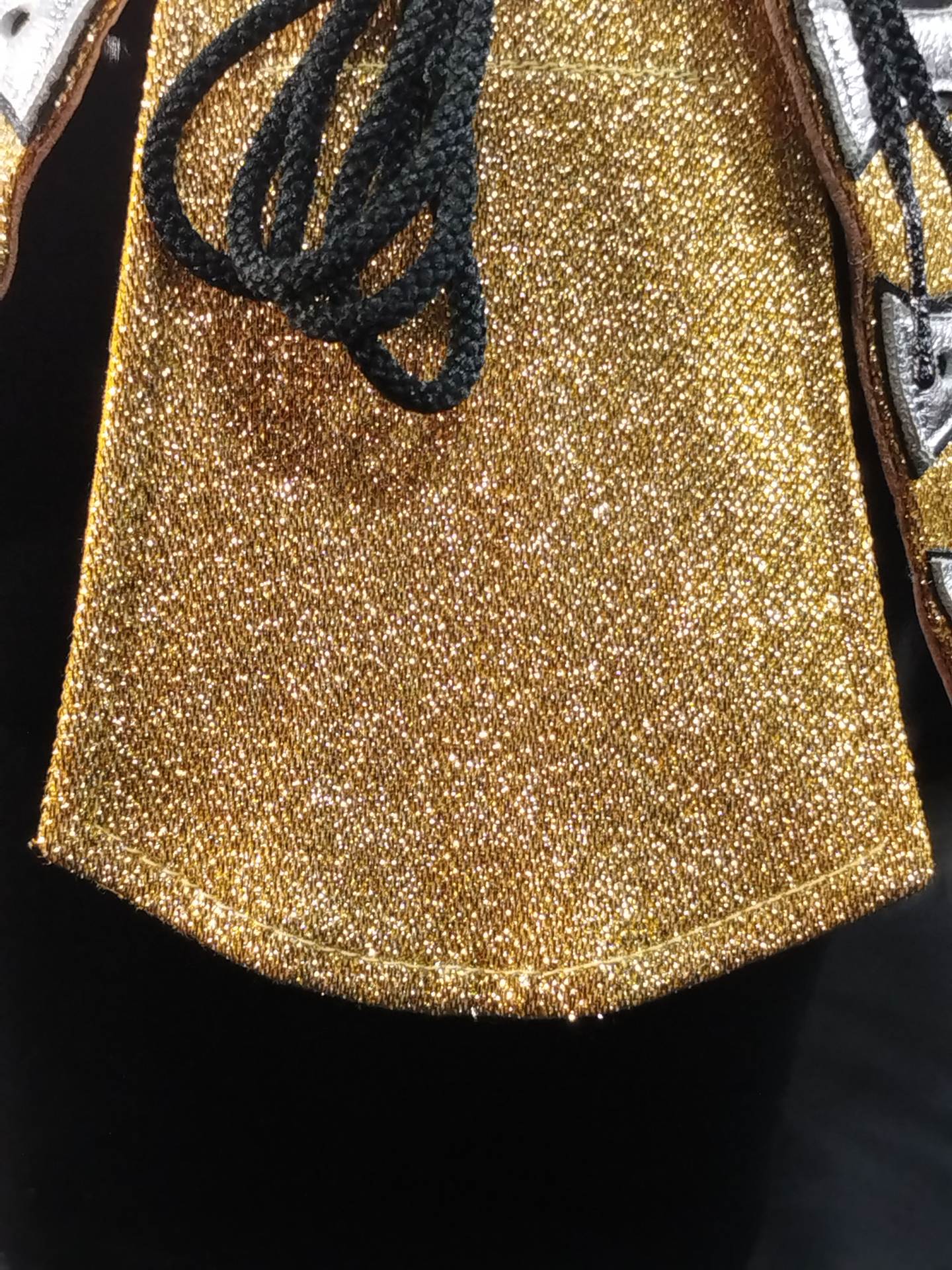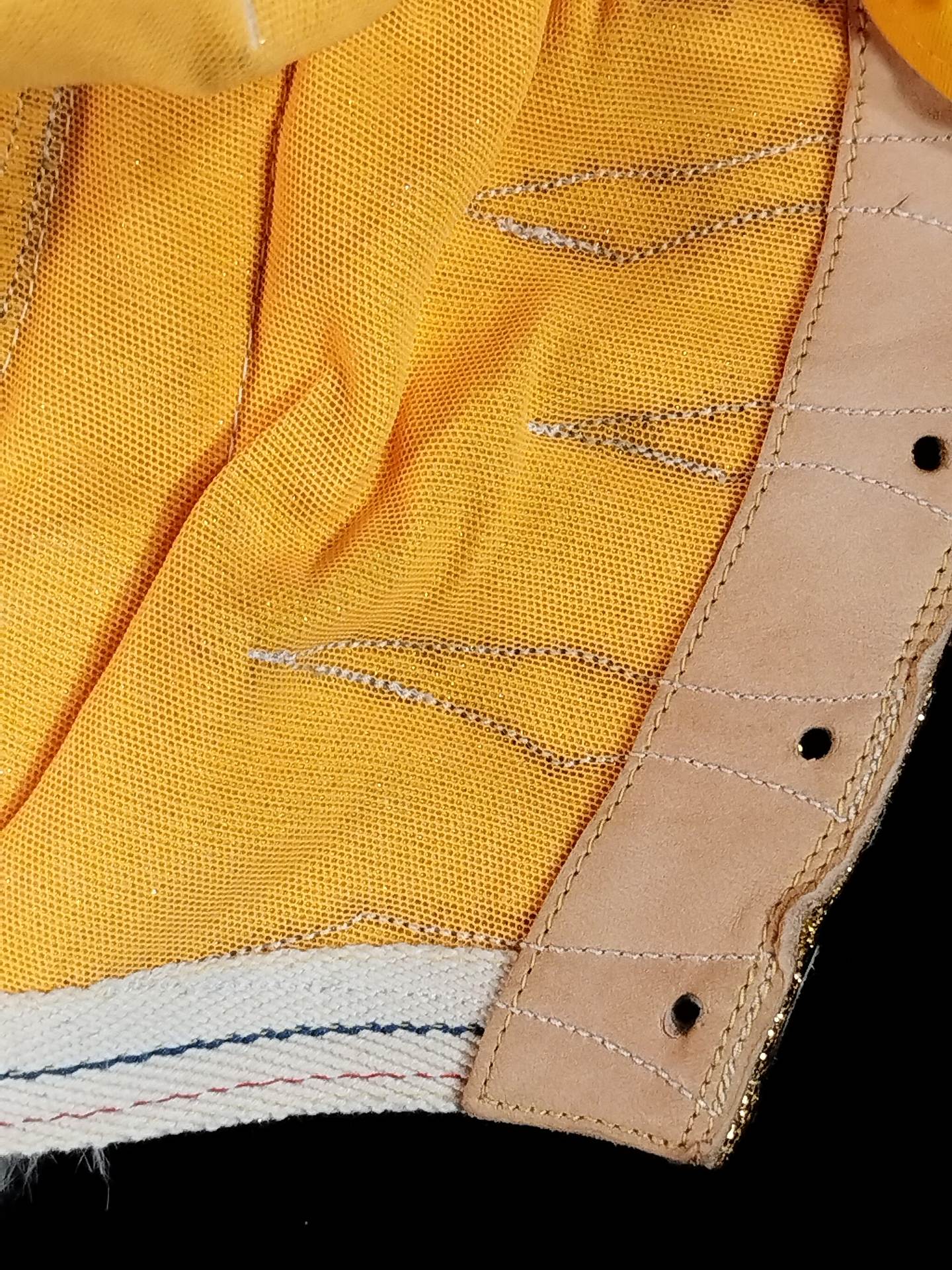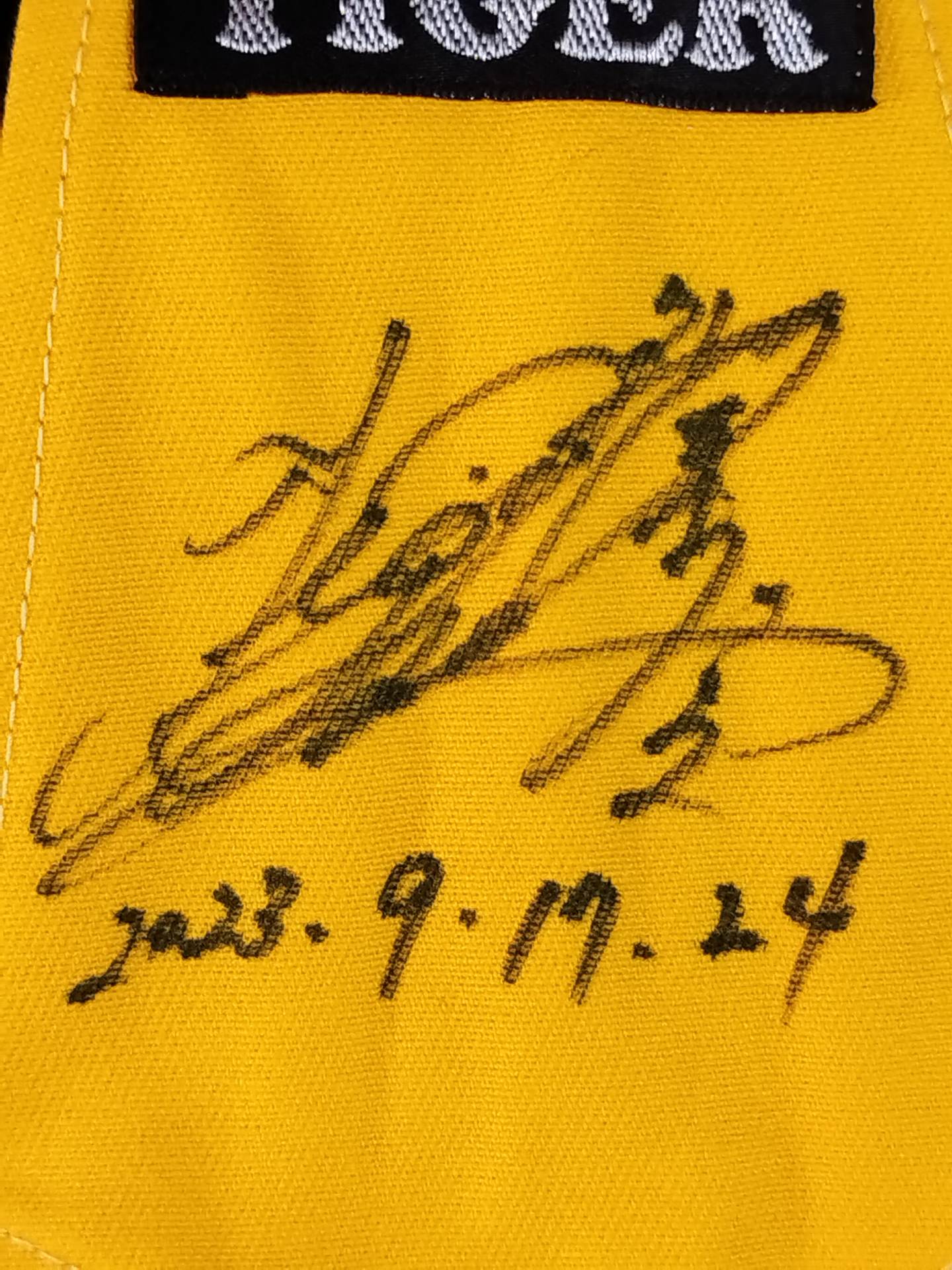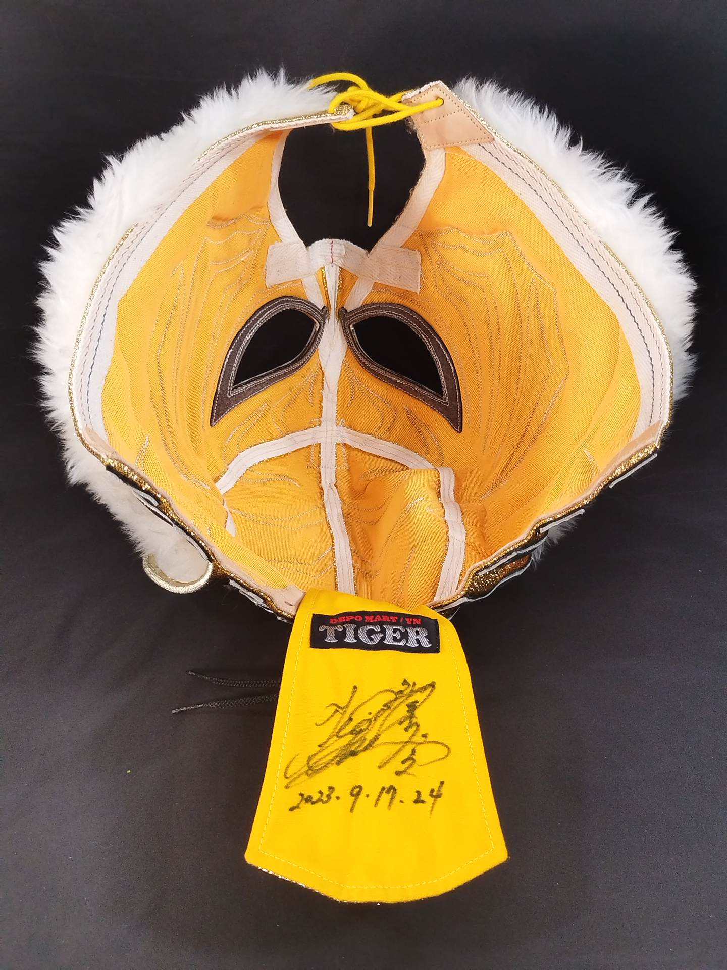 本人使用サイン入り(2023.9.17 / .24) 着用写真付 金ラメ2重生地(メッシュ張り) 黒革地銀特殊革フチ
