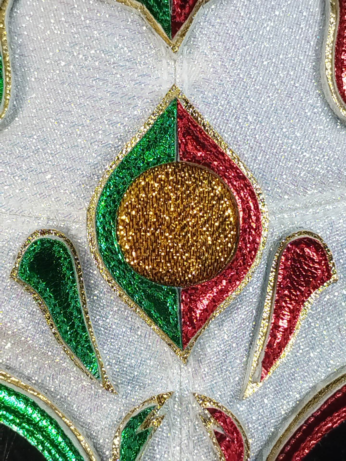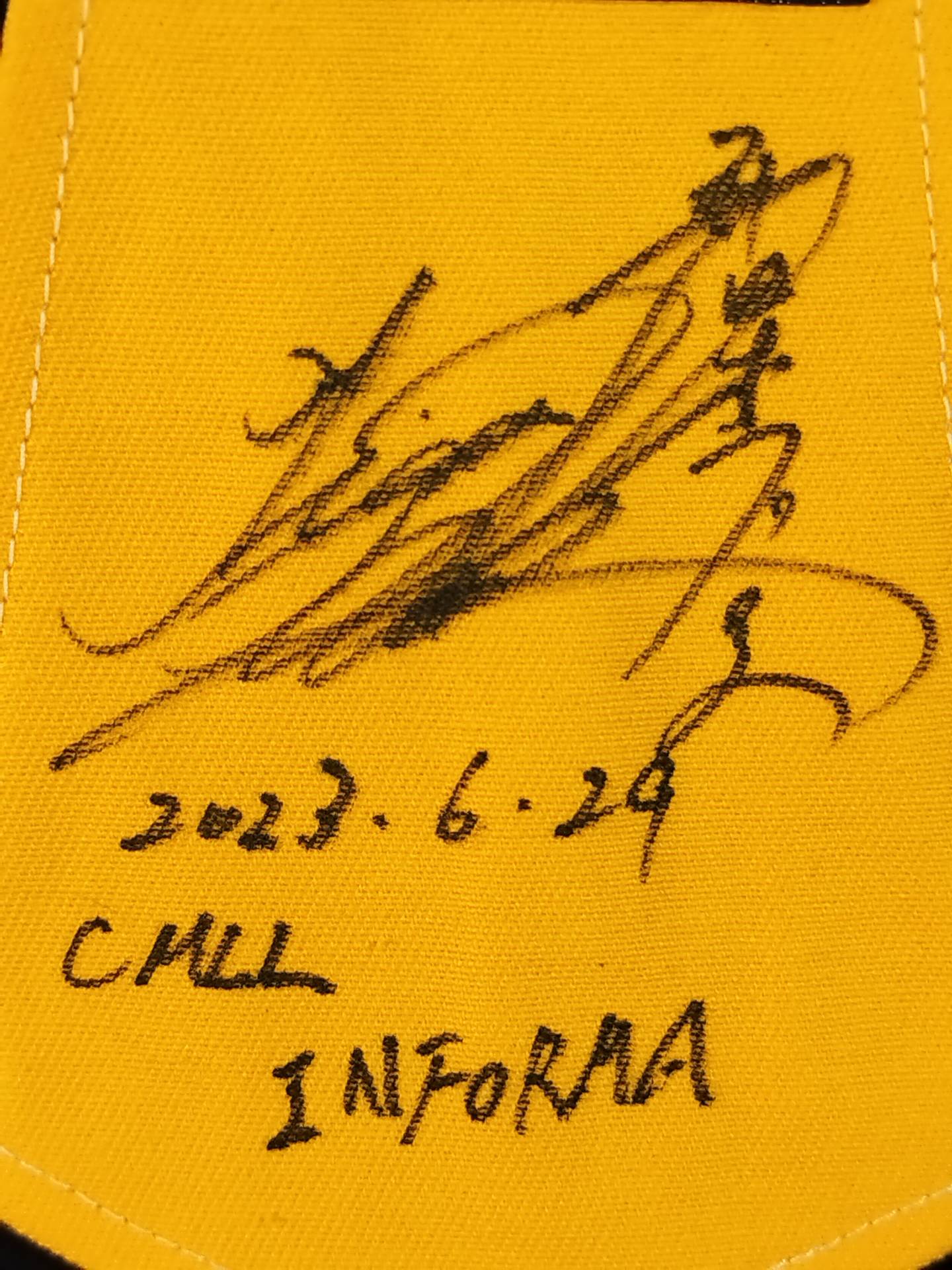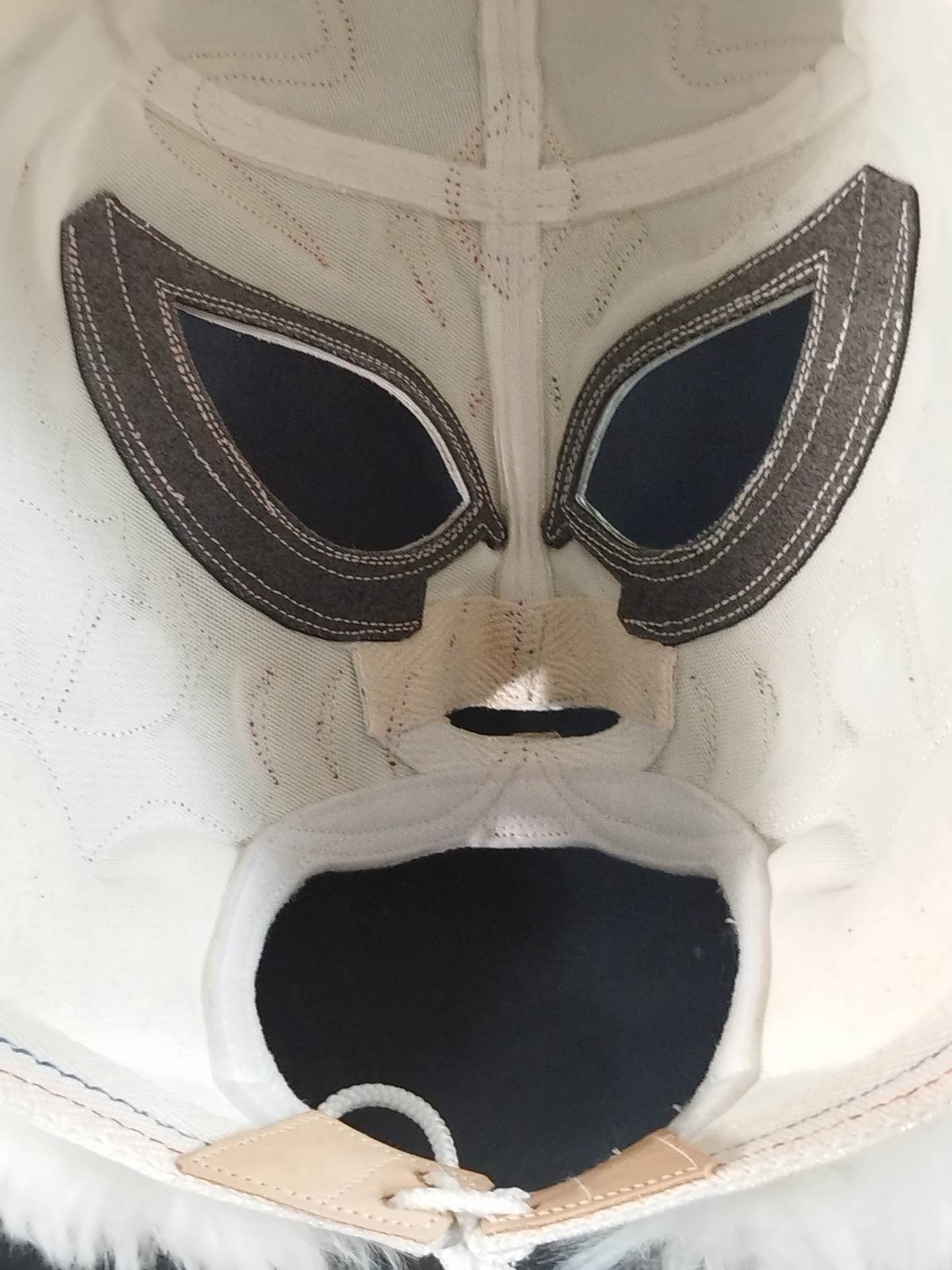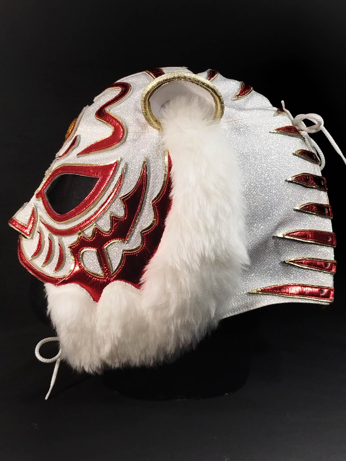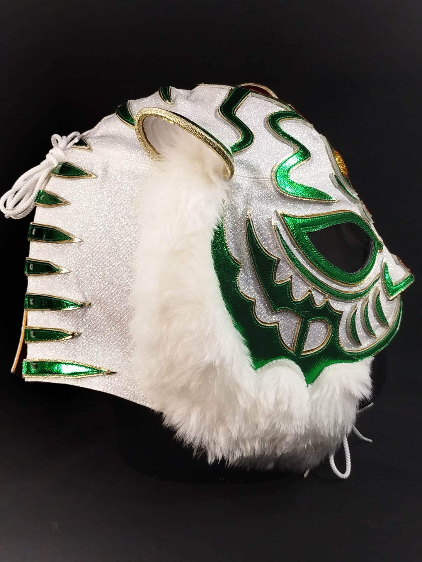 本人使用サイン入り(2023.6.29 CMLL INFORMA) 着用写真付 パールラメ2重生地(メッシュ張り) 金特殊革地緑特殊革フチ&赤特殊革フチ