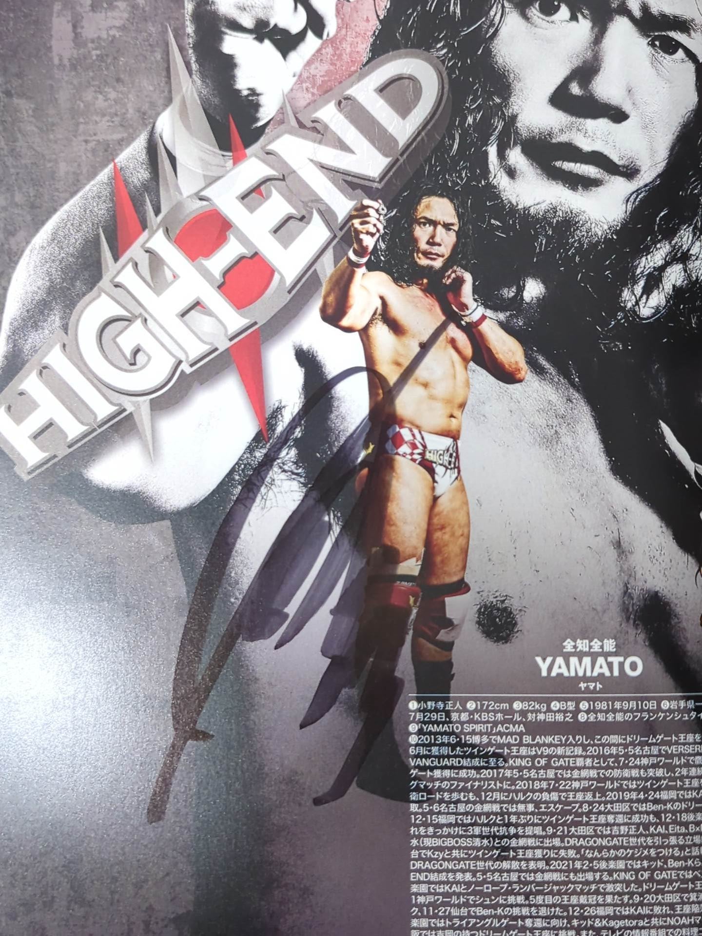ドラゴン・ダイヤ、JACKY"FUNKY"KAMEI、YAMATO、ドラゴン・キッド、箕浦康太、ミノリータ、Ben-K 以上 7選手直筆サイン入り!! /  別紙対戦カードなし OFFICIAL MAGAZIN