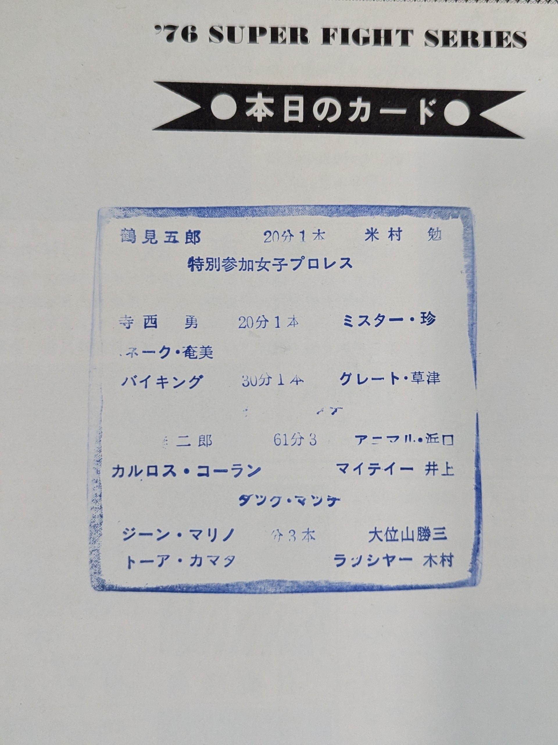 会場:後楽園ホール(開幕戦) / スタンプあり:ラッシャー木村&大位山勝三vsキラー・トーア・カマタ&ジーン・マリノ