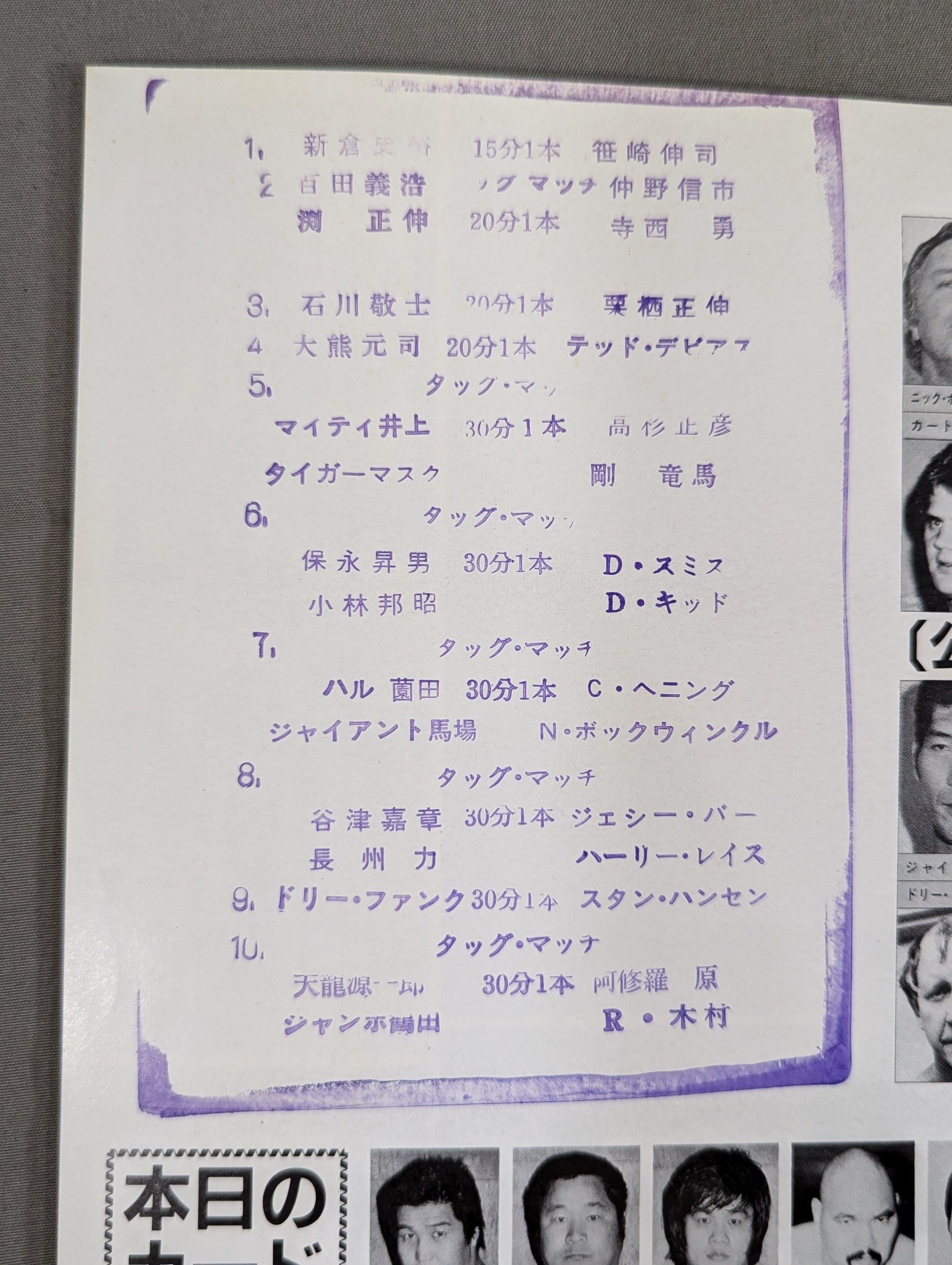 会場:後楽園ホール / スタンプあり:【公式戦】ジャンボ鶴田&天龍源一郎vsラッシャー木村&阿修羅・原 / スタン・ハンセンvsドリー・ファンク・ジュニア