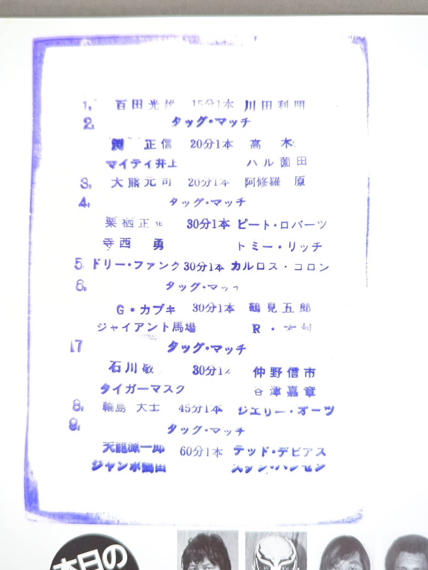 会場:大田区体育館 / スタンプあり:【PWF世界タッグ選手権試合】天龍源一郎&ジャンボ鶴田vsテッド・デビアス&スタン・ハンセン / 輪島大士vsジェリー・オーツ